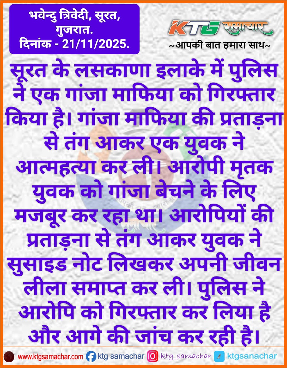 सूरत के लसकाणा इलाके में पुलिस ने एक गांजा माफिया को गिरफ्तार किया है।