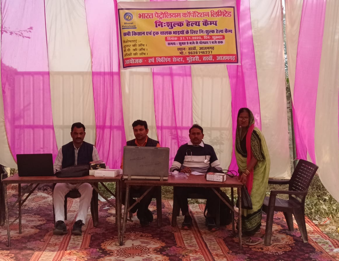 हर्ष फिलिंग स्टेशन मुडेहरी तरवां आजमगढ़ के द्वारा निशुल्क कैंप लगाकर आंखों की जांच बीपी शुगर क्या किया गया जिसमें मुख्य संयोजक धनराज यादव अजय कुमार संदीप वर्मा शिवदास राजभर सोनू सिंह अनिल यादव साहिल अहमद अजय विश्वकर्मा राष्ट्रीयअध्यक्ष विश्व कल्याण राष्ट्रीय मानव समाज पार्टी और मुख्य अतिथि ओम ठाकुर बीपीसीएल सेल्स एरिया कॉरपोरेशनलिमिटेड कह रहे मुख्य चिकित्सा डॉ अजीत कुमार पांडे डॉ गुलाब गौड़ की जांच शिविर को सुचारू रूप से चलाया