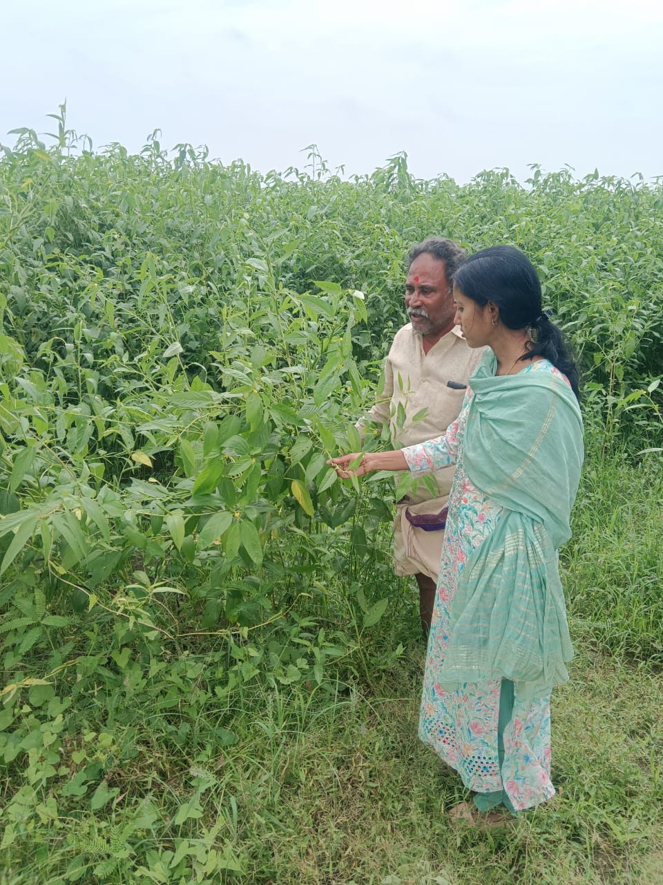 గోస్పాడు (AIMA MEDIA): గోస్పాడు గ్రామంలో స్థానిక రైతు విజయానంద రెడ్డి 15 ఎకరాలలో సాగుచేసిన జనుము పంటను పరిశీలించిన మండల వ్యవసాయ అధికారి స్వప్నిక రెడ్డి. ఏవో మాట్లాడుతూ మండలంలో రైతులు సాంప్రదాయ పంటలకు బదులుగా ప్రత్యామ్నాయ పంటలు సాగు చేసుకోవాలని సూచించారు. ఎకరాకు 8 నుండి 10 క్వింటాలు దిగుబడి వస్తుందని అంచనా వేశారు. రైతులు తప్పనిసరిగా పంట మార్పిడి చేసుకోవాలని ధాన్యాల బదులు మినుము, పెసర ,ఆవాలు ఇతర ప్రత్యామ్యామ పంటలు , మరియు తక్కువ నీటితో పంటలు సాగు చేసి నేల సారవంతం పెంచుకోవాలని రైతులకు తెలియజేసారు.ఈ కార్యక్రమంలో ఏ.ఈ.ఓ రామకృష్ణ ,అగ్రికల్చర్ అసిస్టెంట్ శ్రీధర్ పాల్గొన్నారు.