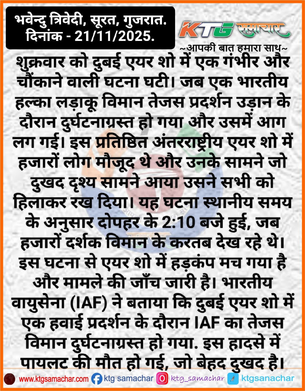 दुबई एयर शो में एक गंभीर और चौकाने वाली घटना घटी।