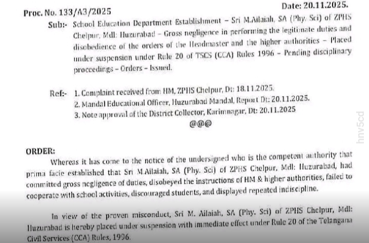 Date:-20-11-2025 Karimnagar 3Government employees suspend by collecter