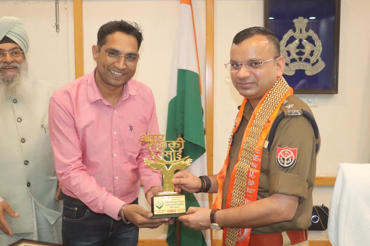 “मुरादाबाद नागरिक सुरक्षा सम्मान” के अध्यक्ष श्री गुरविन्दर सिंह तथा विभिन्न नागरिक संगठनों के पदाधिकारियों/सदस्यों द्वारा, प्रॉपर्टी डीलर से एक करोड़ रुपये की रंगदारी मांगने वाले हिस्ट्रीशीटर बदमाश आसिफ एवं उसके साथी दीनू की मुठभेड़ कर कानून एवं शान्ति व्यवस्था स्थापित करने पर वरिष्ठ पुलिस अधीक्षक, मुरादाबाद को स्मृति-चिन्ह एवं पुष्पगुच्छ आदि भेंट कर सम्मानित किया गया।