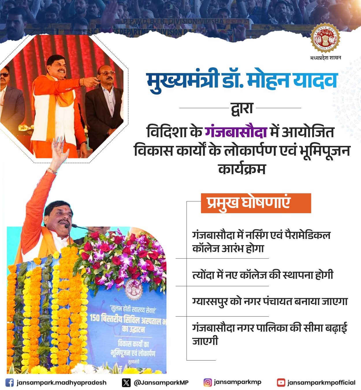मुख्यमंत्री डॉ. मोहन यादव विदिशा के गंजबासौदा में आयोजित
