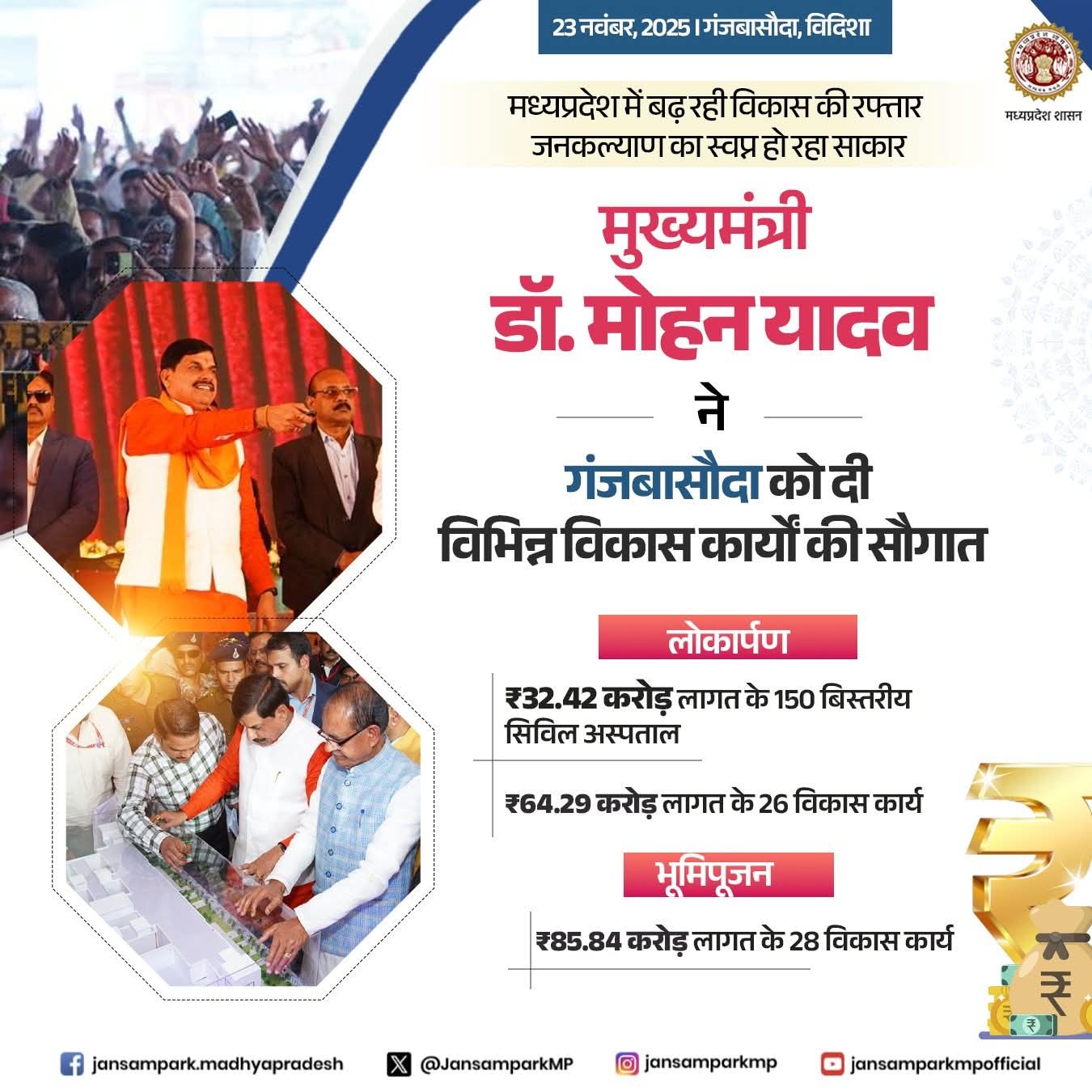 ◀️मुख्यमंत्री डॉ. मोहन यादव ने गंजबासौदा को दी विभिन्न विकास कार्यों की सौगात