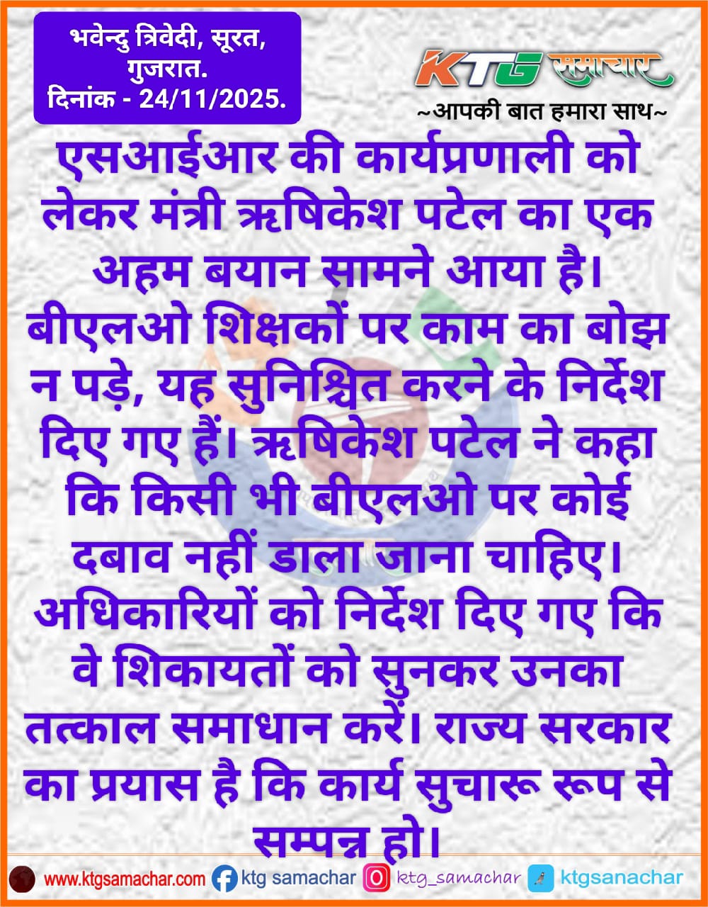 SIR की कार्यप्रणाली को लेकर मंत्री ऋषिकेश पटेल का एक अहम बयान सामने आया है।