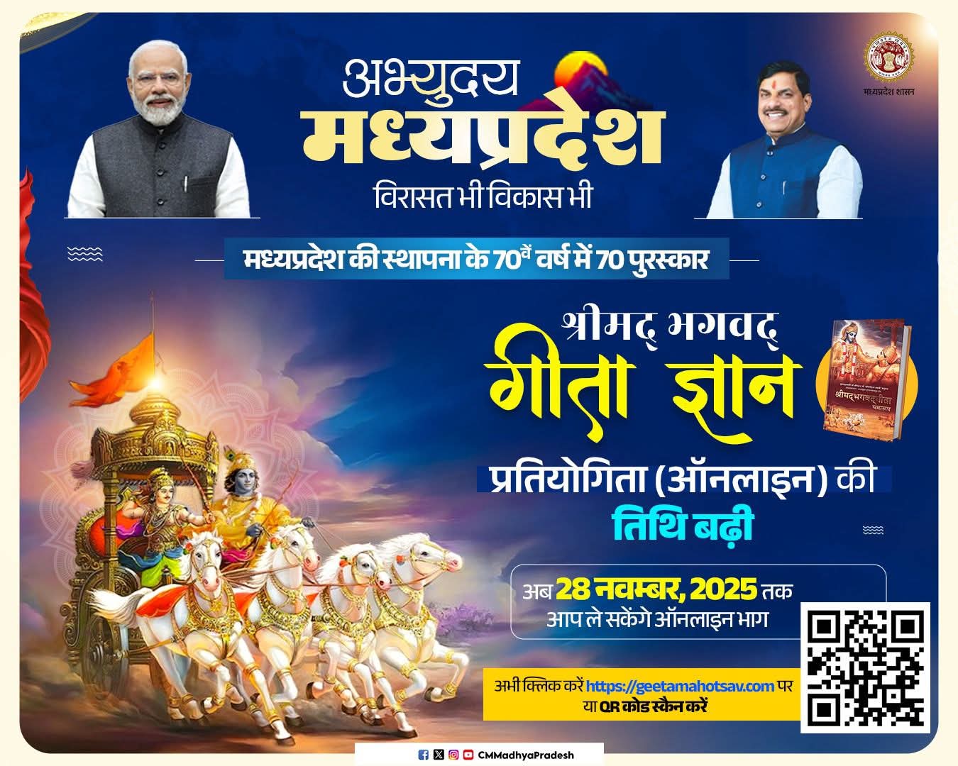 श्रीमद् भगवद् गीता ज्ञान प्रतियोगिता (ऑनलाइन) की तिथि बढ़ी