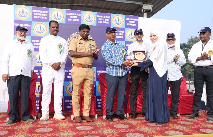 शफी बरोंडकर स्कूल आयोजित एक स्पोर्ट्स डे कार्यक्रम के दौरान शिक्षकों ने अपनी हेड मिस्ट्रेस फ़रहाना मैडम को सिनियर पी आय, पाटील सर के हातो से खास अंदाज में सम्मानित किया। पूरे समारोह में भावनाओं और खुशी का माहौल दिखाई दिया।