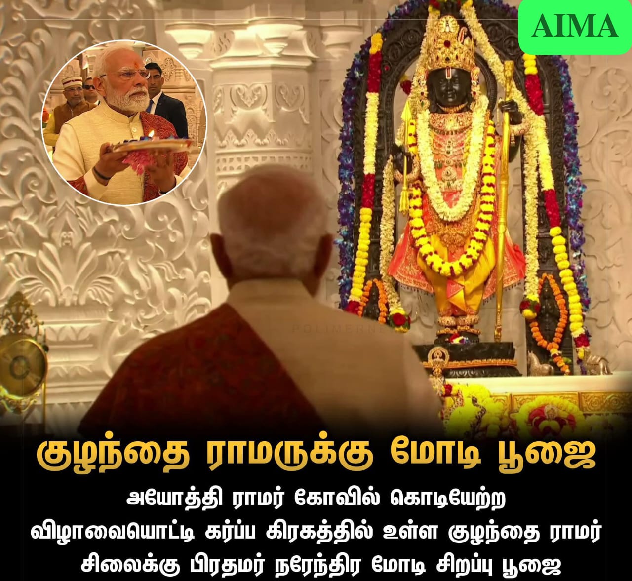 அயோத்தி சென்ற பிரதமர் மோடி கட்டி முடிக்கப்பட்ட முழுமையான ராமர் கோயிலை திறந்து வைத்து குழந்தை ராமரை தரிசனம் செய்தார்