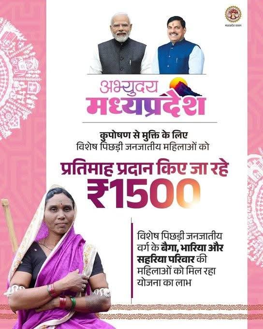 कुपोषण से मुक्ति के लिए विशेष पिछड़ी जनजातीय महिलाओं को प्रतिमाह प्रदान किए जा रहे ₹1500