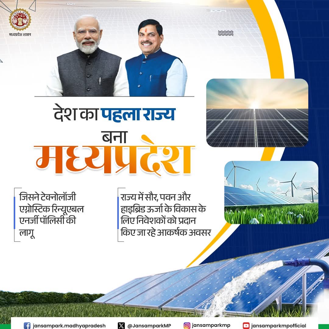 देश का पहला राज्य बना "मध्यप्रदेश"◀️जिसने टेक्नोलॉजी एग्नोस्टिक रिन्यूएबल एनर्जी पॉलिसी की लागू#CMMadhyaPradesh #NewenergyMp #Solarenergy