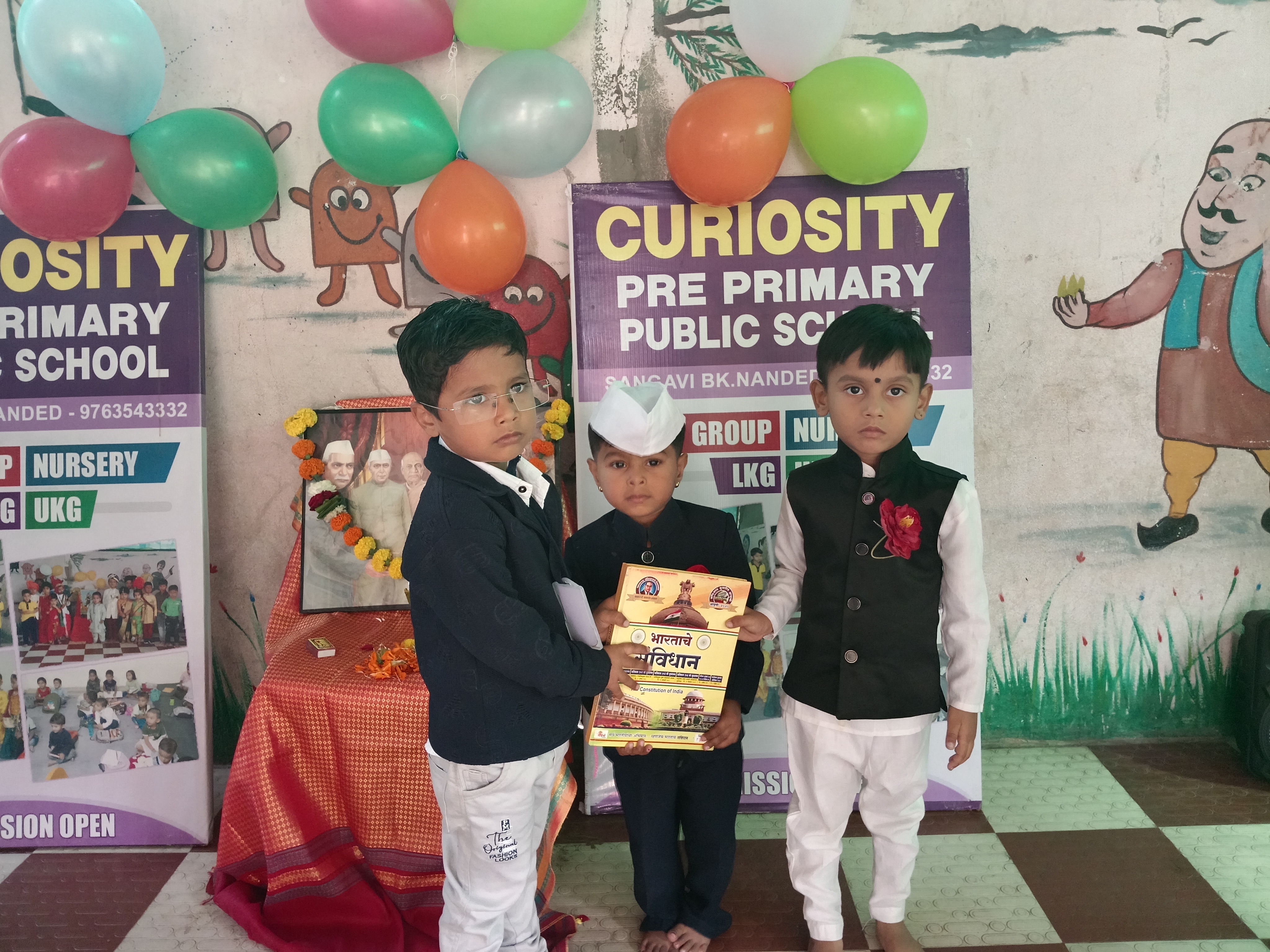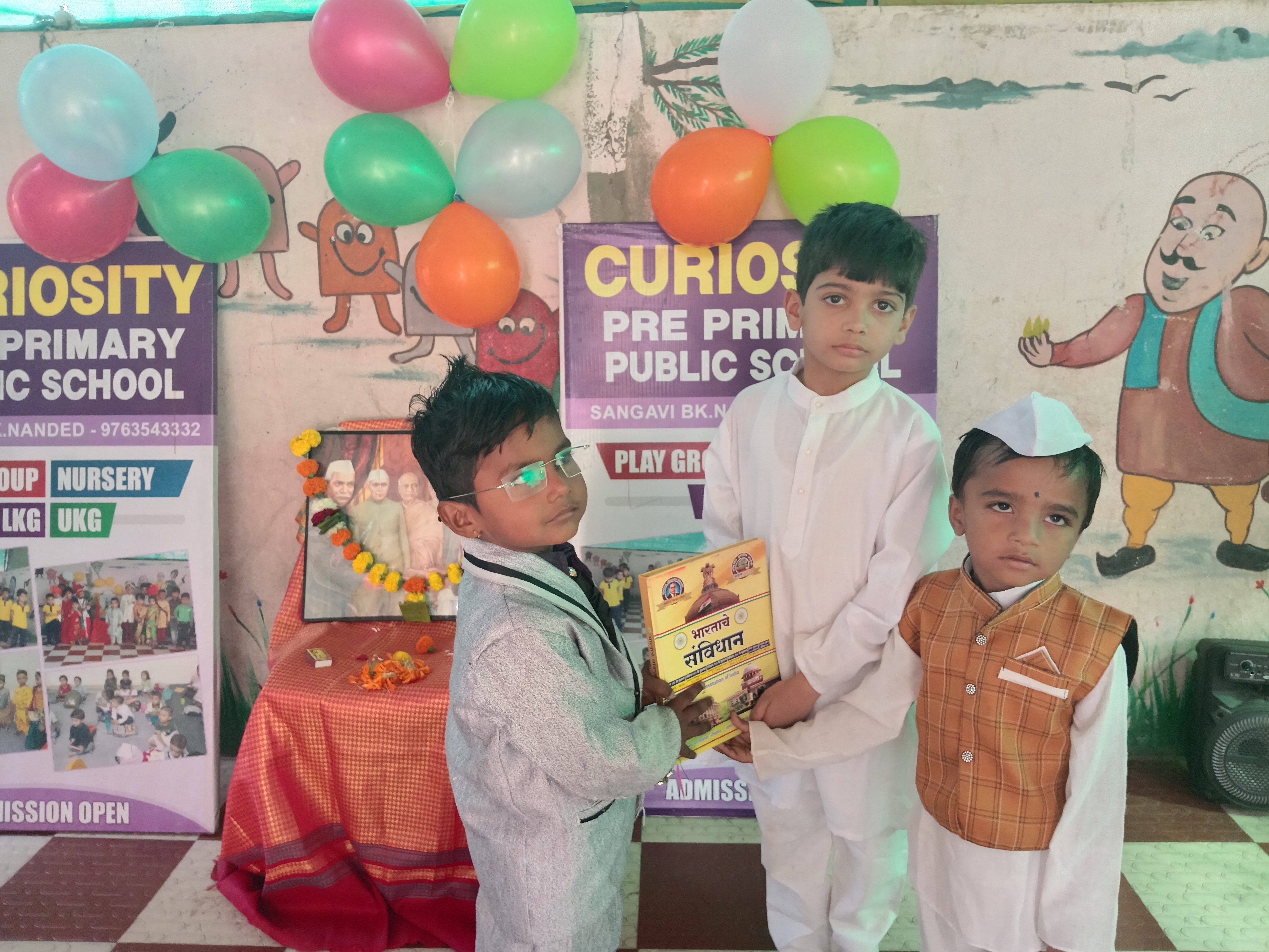 नांदेड सांगवी क्युरिओसिटी स्कूल सांगवी येथे आज 26नोव्हेबर रोजी भारतीय संविधान गौरव दिन साजरा करण्यात आला व 26/11च्या हल्ल्यातील शहिदांना भावपूर्ण श्रद्धांजली वाहण्यात आली. यानिमित्ताने संविधानाचे महत्व आणि डॉ.बाबासाहेब आंबेडकरांच्या योगदानाला आदराने स्मरण करण्यात आले. या कार्यक्रमाची सुरुवात क्युरिओसिटी स्कूलचे संचालक प्रा.माधव खिल्लारे यांनी भारतीय राज्यघटनेचे शिल्पकार डॉ बाबासाहेब आंबेडकर यांच्या प्रतिमेचे पूजन करून स्कूलच्या मुख्याध्यापिका सौ.आशा खिल्लारे यांनी संविधान पुस्तिकेचे पुजन हे पुष्प अर्पण करून 26/11च्या दहशतवादी हल्ल्यातील शहिदांना भावपूर्ण श्रद्धांजली वाहण्यात आली. त्यानंतर संविधान उद्देशिकेचे सामुदायिक वाचन करण्यात आले प्रा.माधव खिल्लारे यांनी संविधान गौरव दिनानिमित्त शुभेच्छा दिल्या व पुढे म्हणाले की, आपल्या देशाचे संविधान हे जगात सर्वात मोठे लिखित स्वरूपातील असून त्यांमध्ये समाविष्ट असणाऱ्या मुल्य स्वातंत्र्य,समता,न्याय व बंधूता यांचे महत्त्व सविस्तर पटवून देताना विद्यार्थ्यांमध्ये संविधान याबद्दल जागरूकता व लोकशाहीचे मूल्य अतिशय समर्पक शब्दांत समजावून सांगितले स्कूलच्या मुख्याध्यापिका सौ.आशा खिल्लारे यांनी संविधान सभेने 26नोव्हेबर 1949रोजी राज्यघटना स्विकारण्याचा व त्यामागील अथक परिश्रम सांगितले व तसेच त्यांनी संविधान निर्मितीमध्ये डॉ.बाबासाहेब आंबेडकरांच्या भूमिकेवर प्रकाश टाकला. या कार्यक्रमांच्या यशस्वीतेसाठी शाळेच्या शिक्षिका अंजली मिस,मोहीनी मिस, सोनिया मिस ,अंकिता मिस व चवणे मावशी आदींनी परिश्रम घेतले