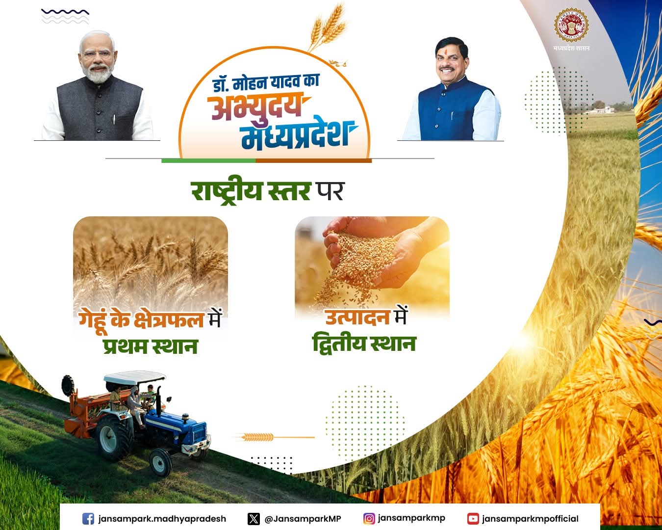 राष्ट्रीय स्तर पर गेहूं के क्षेत्र में प्रथम स्थान