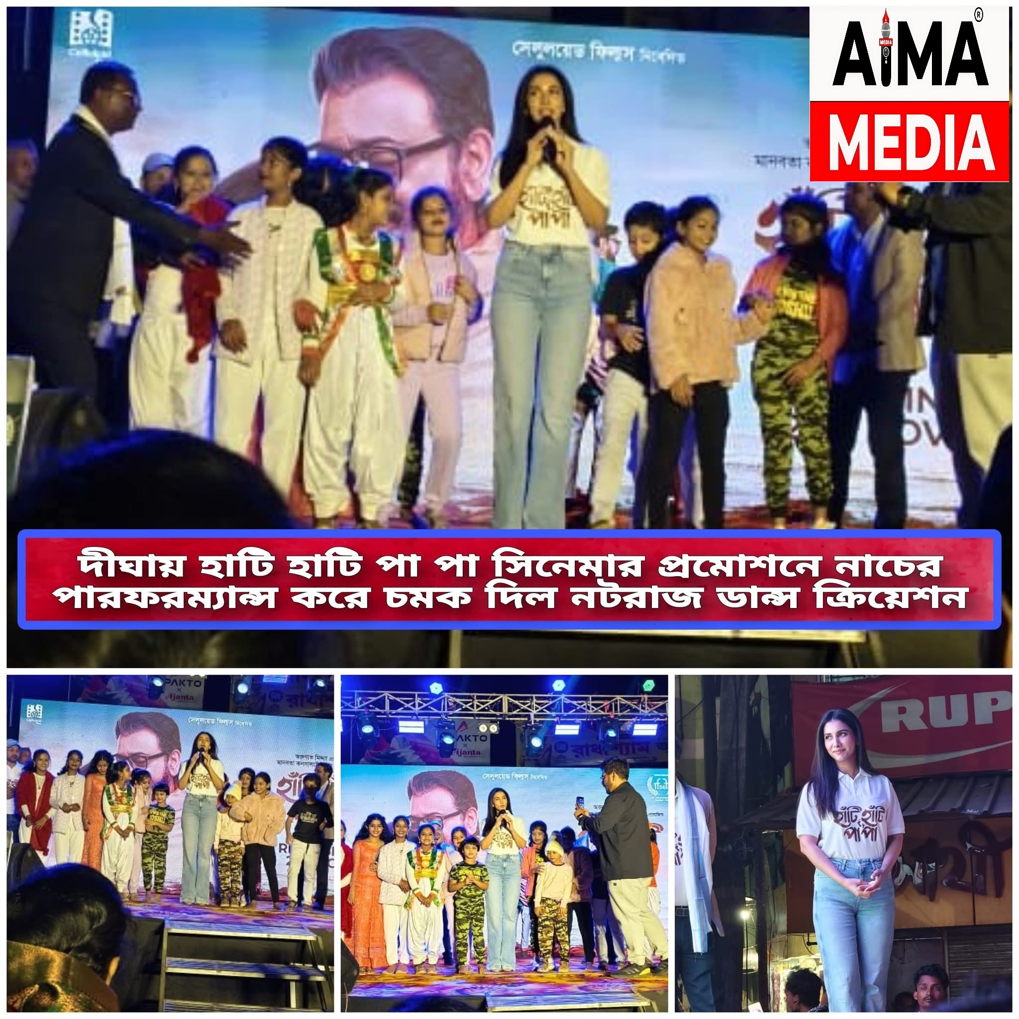 সৈকত নগরী দীঘায় হাটি হাটি পা পা সিনেমার প্রমোশনের জন্য রুক্মিণী দীঘায় পৌঁছালো। দীঘায় এই সিনেমার প্রমোশনে নাচের পারফরম্যান্স করলো নটরাজ ডান্স ক্রিয়েশন। এই নটরাজ ড্যান্স ক্রিয়েশন হাওড়া থেকে দীঘা পর্যন্ত পারফরম্যান্স করে থাকে। এই নটরাজ ডান্স ক্রিয়েশনের হাওড়া শাখা এবং অলংকারপুর শাখা। এই দিন অলংকার পুর শাখার ক্ষুদ্র শিল্পীরা নাচের পারফরমেন্স করলো হাটি হাটি পা পা সিনেমার নায়িকা রুক্মিনির সাথে। নটরাজ ডান্স ক্রিয়েশন এর মূল কর্ণধার #মৌয়া_রায়, তিনি জানান আমাদের অলংকার ফুল শাখার নটরাজ ডান্স ক্রিয়েশন এর বড়দের পরীক্ষা চলছে সেই জন্য অলংকারপুর শাখার নটরাজ ডান্স ক্রিয়েশন এর কচি কাঁচারা এই হাটি হাটি পা পা সিনেমার প্রমোশনে নায়িকা রুক্মিনির সাথে সাথে পা মেলালো। এবং ভালো পারফরম্যান্স করল নাচের মধ্য দিয়ে। এই মৌয়া রায় নাচ শেখান এবং বহু পুরস্কারও পেয়েছেন। মৌয়া রায় হাওড়া এবং অলংকারপুর দুটি শাখা সামলান। এই দিন প্রমোশনে কচিকাচাদের নিয়ে আমাদের পারফরমেন্স হল সৈকত নগরী দীঘায়। পর্যটকদের সাথে সাথে স্থানীয় এলাকার প্রচুর সিনেমা প্রেমিক এই অনুষ্ঠানে উপস্থিত হয়েছিল। এই সিনেমার প্রমোশন এর আয়োজন করেছিলেন পদিমা -২ এর অঞ্চল প্রধান সুশান্ত পাত্র উনার এই আয়োজনে সিনেমার প্রমোশন সফল হয়েছে বললেই চলে। এছাড়াও স্থানীয় নেতৃত্ববৃন্দ উপস্থিত ছিলেন।