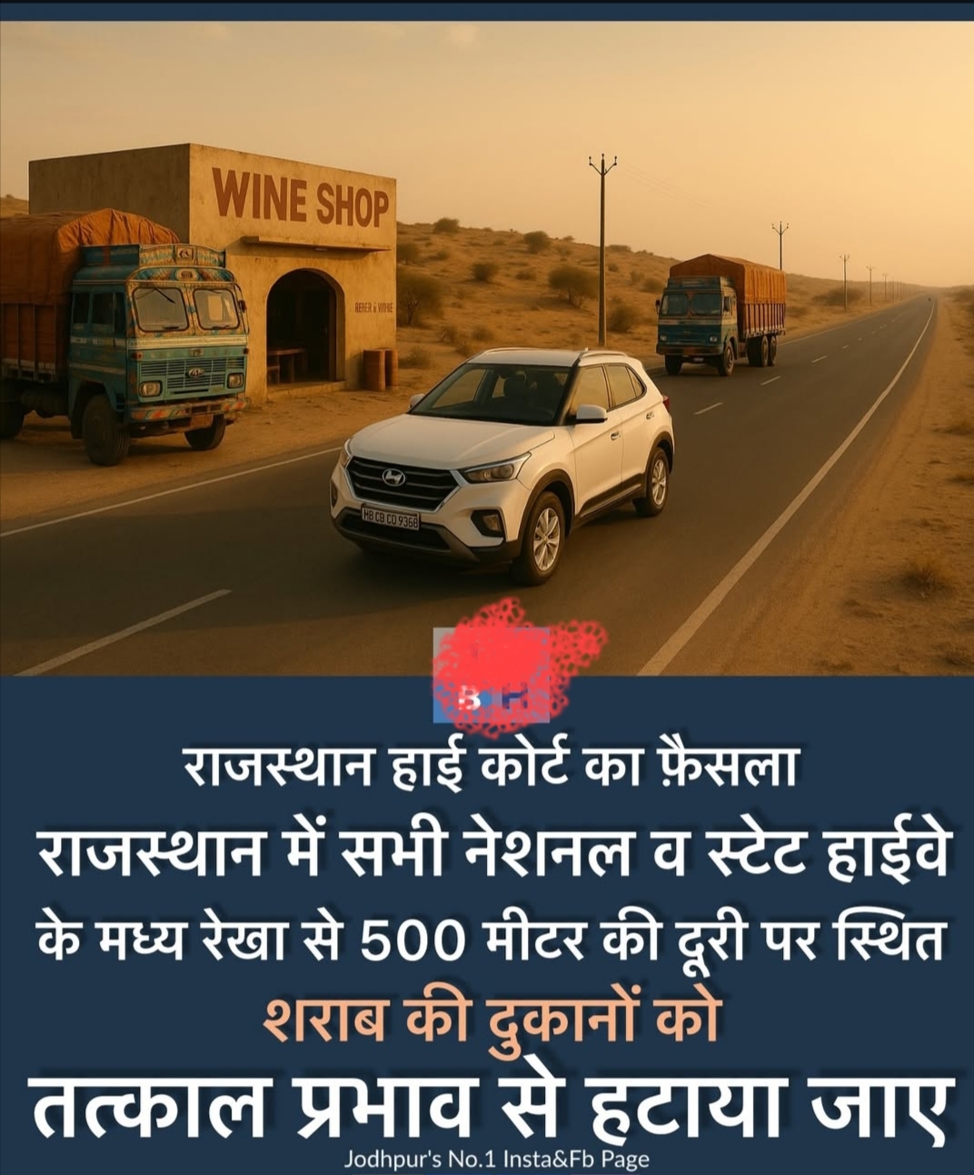 राजस्थान हाईकोर्ट का बड़ा फैसला हाईवे के पास से 500 मीटर की दूरी के भीतर स्थित सभी शराब की दुकानें हटाई जाएंगी।
