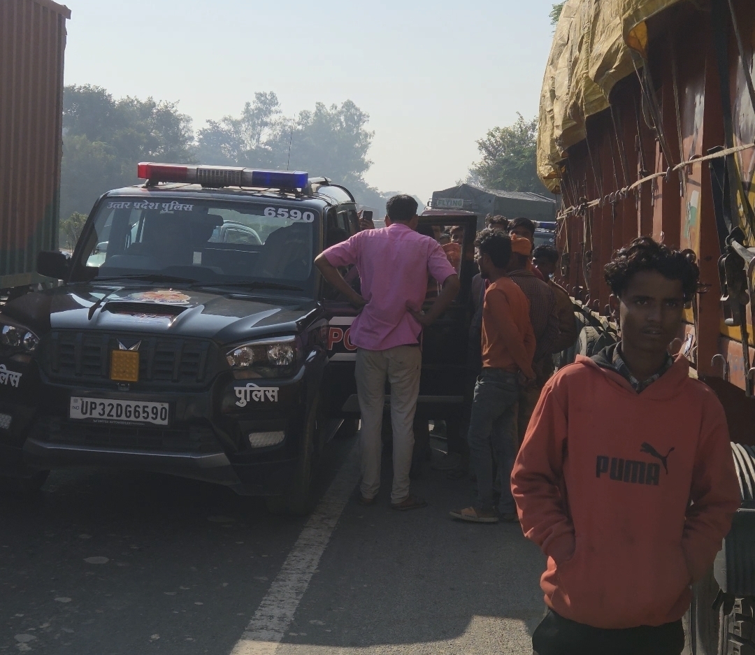 सीतापुर-लखनऊ हाइवे पर ट्रक ने बाइक को मारी टक्कर, युवक गंभीर, जाम में आधा घंटे तक फंसी रही एम्बुलेंस, पुलिस ने मशक्कत कर खुलवाया मार्ग