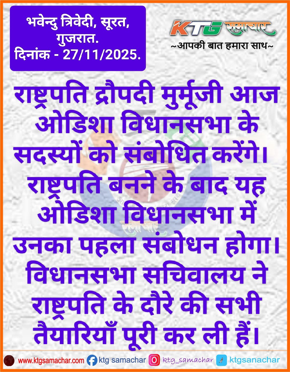 राष्ट्रपति द्रौपदी मुर्मू जी आज ओड़िशा विधानसभा के सदस्यों को संबोधित करेंगे।