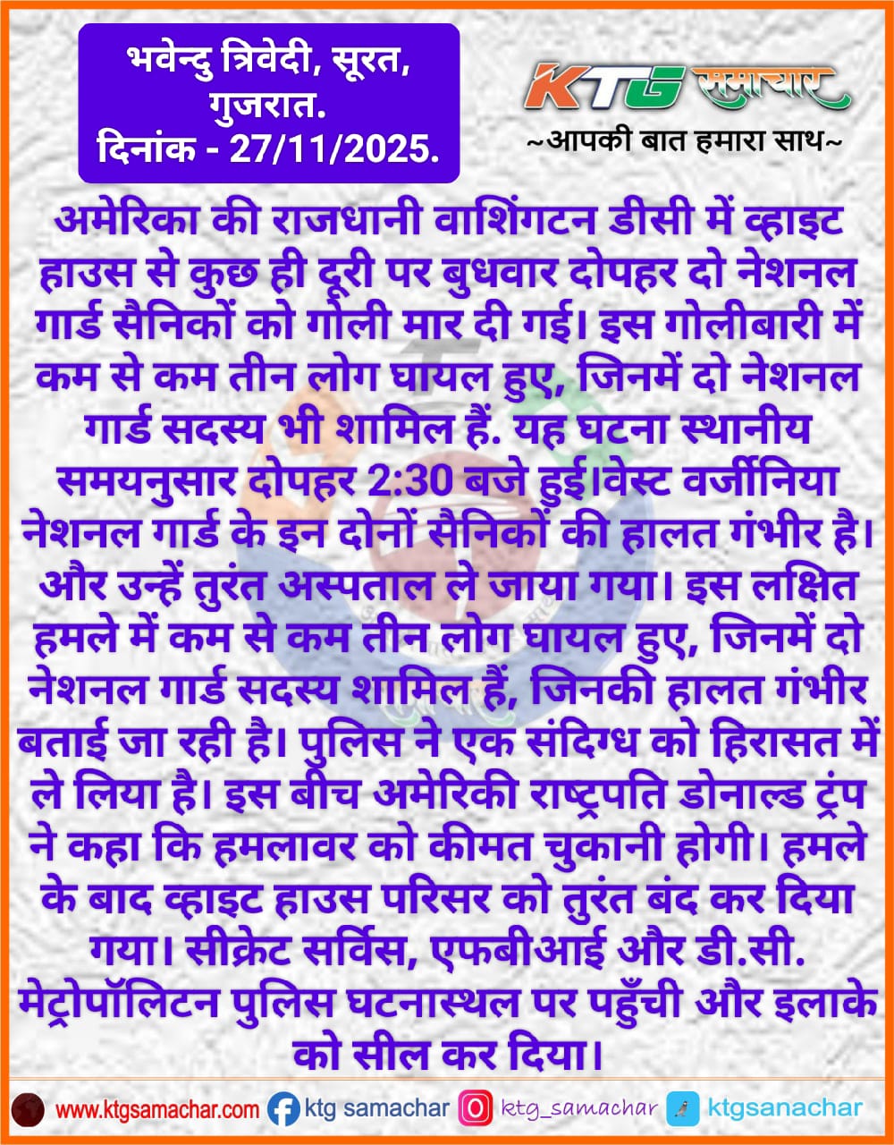 अमेरिका के व्हाइट हाउस के कुछ ही दूरी पर हुई गोलीबारी।