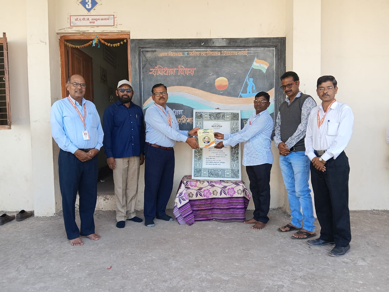 संविधान सप्ताहानिमित्त विद्यालयात शासनाच्या परिपत्रकानुसार विविध उपक्रमांचे आयोजन करण्यात आले. गावामधून प्रभात फेरी काढून संविधान आधारित घोषणा देण्यात आल्या. चित्रकला स्पर्धा, संविधान विषयक प्रश्नमंजुषा, पथनाट्य, व्याख्यानमाला, मानवी साखळी, पोस्टर स्पर्धा, ‘संविधान विथ सेल्फी’ उपक्रम तसेच फलक लेखन अशा उपक्रमांनी विद्यालय परिसर जागृत आणि लोकशाहीमय वातावरणाने भारावून गेला. या सर्व कार्यक्रमांमध्ये इतिहास समिती प्रमुख दिलीप शिंगणे, समिती सदस्य संजय पिवटे, प्रा. सुधाकर सस्ते, प्रा. रमेश जगताप, प्रा. सुमित जाधव, नितीन शेळके, सौ. वैशाली मांजाटे, सुदाम चंद्रे,सौ. वंदना लकडे, देविदास दळवी, गजानन वाघमारे, राजेंद्र भवर तसेच समितीतील सर्व सदस्यांचे सहकार्य लाभले. फलक लेखनासाठी कलाशिक्षक रवींद्र खानंदे यांनी सहकार्य केले.