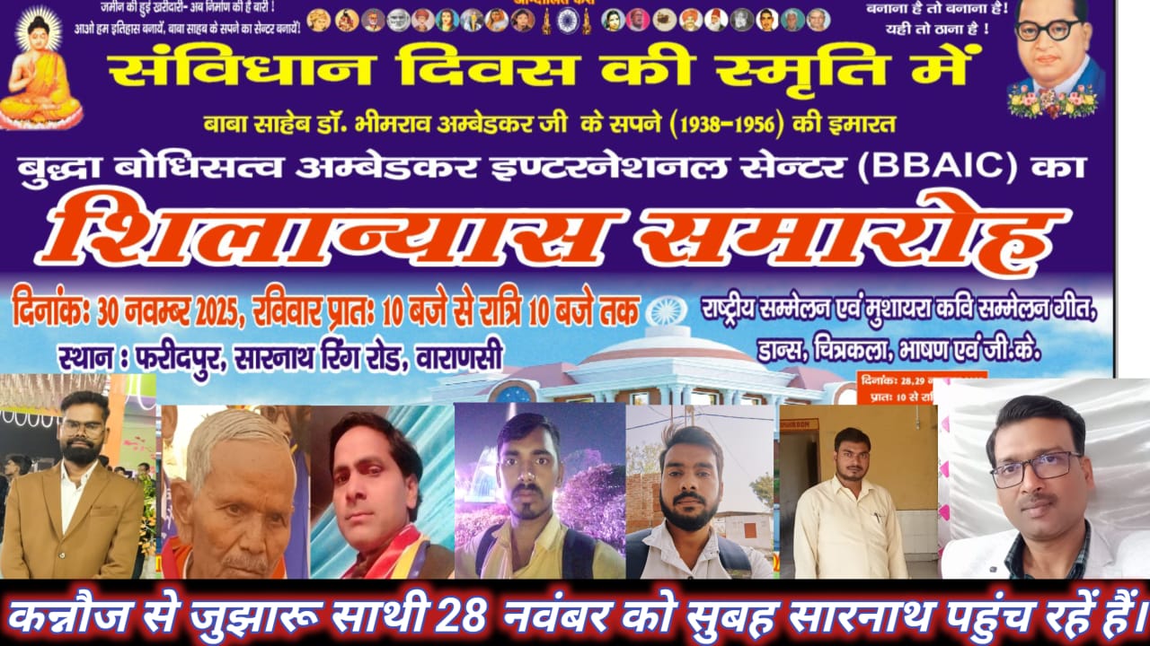 जिला वाराणसी में क्षेत्र सारनाथ में बुद्धा बोधिसत्व अम्बेडकर इण्टर नेशनल सेंटर शिलान्यास समारोह के लिए जिला कन्नौज टीम जिलाध्यक्ष श्री सर्वजीत आर्या