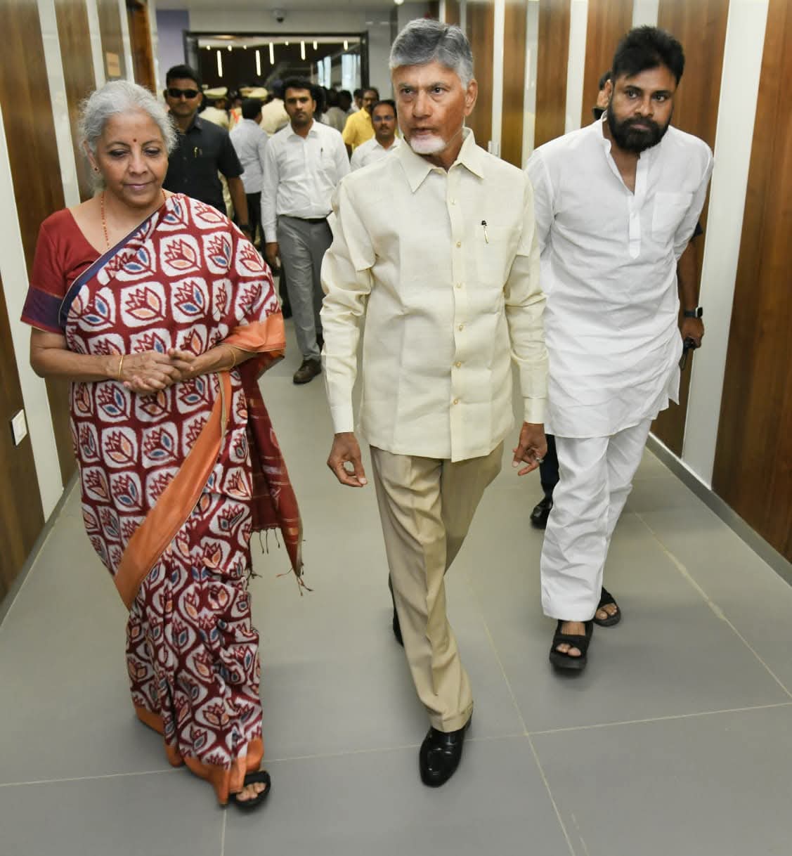 కేంద్రమంత్రి నిర్మలాసీతారామన్‌ అమరావతిలో పర్యటిస్తున్నారు. నిర్మలా సీతారామన్‌కు సీఎం చంద్రబాబు, డిప్యూటీ సీఎం పవన్ కల్యాణ్‌, మంత్రి నారా లోకేశ్‌ స్వాగతం పలికారు. సీఆర్‌డీఏ ప్రధాన కార్యాలయంలో కేంద్ర ఆర్థికమంత్రి నిర్మలా సీతారామన్‌తో సీఎం చంద్రబాబు సమావేశమయ్యారు. అమరావతిలో 25 బ్యాంకులు, ప్రభుత్వ రంగ సంస్థల ప్రధాన కార్యాలయాల నిర్మాణానికి నిర్మలా సీతారామన్‌ శుక్రవారం శంకుస్థాపన చేయనున్నారు.