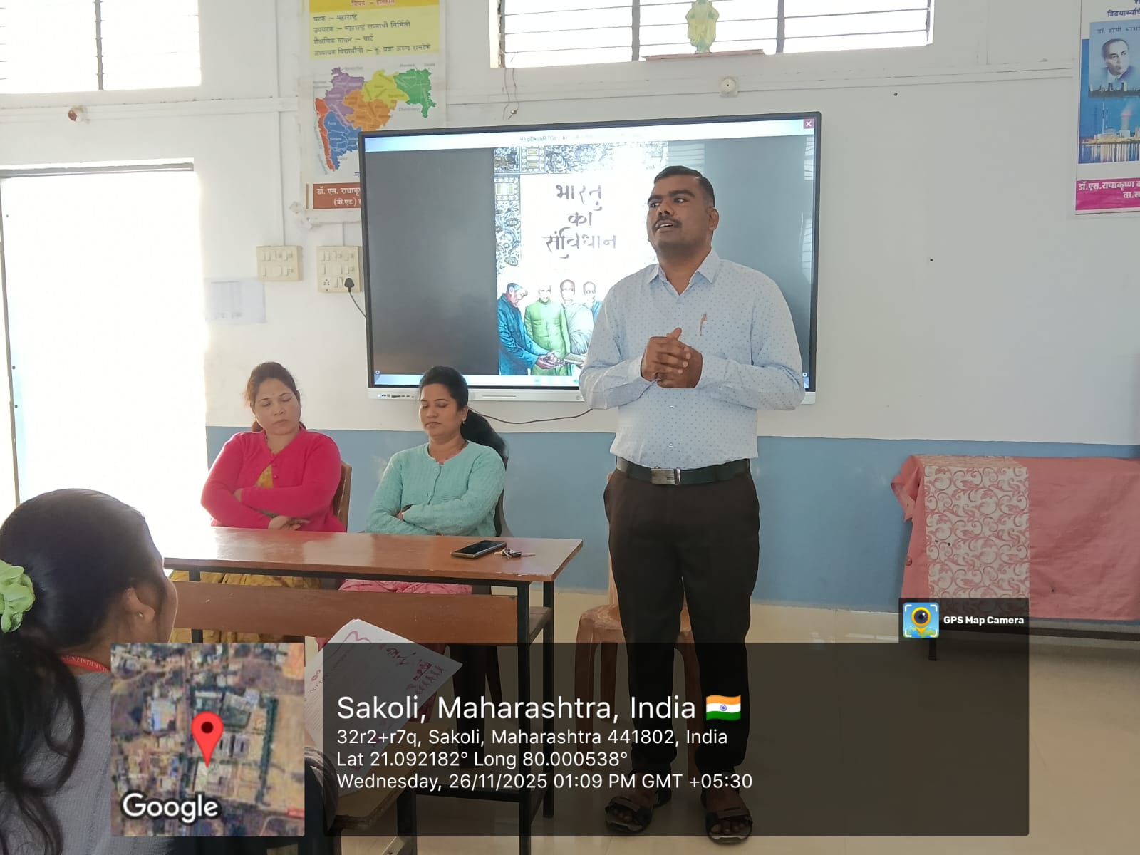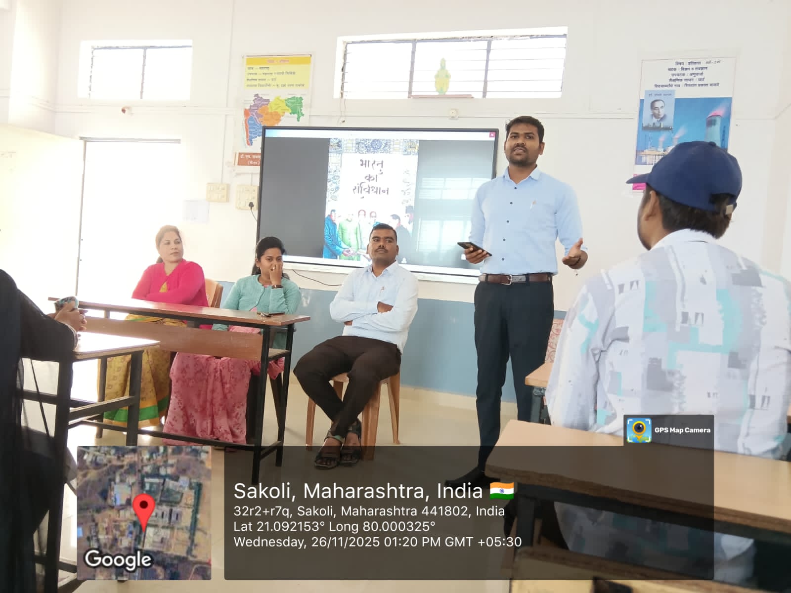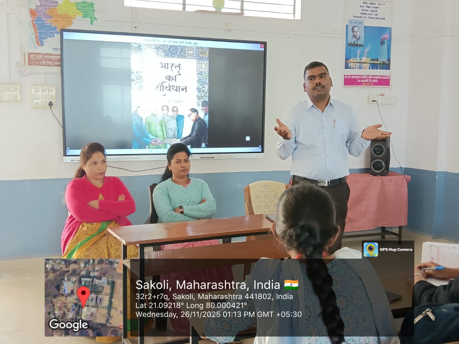 दिनांक 26 नोव्हेंबर 2025 ला संविधान दिवसाच्या निमित्ताने डॉ. एस. राधाकृष्णन कॉलेज ऑफ़ एज्युकेशन,साकोली येथे भव्य कार्यक्रम आयोजित करण्यात आले. कार्यक्रमाची सुरुवात भारतीय राज्यघटनेचे शिल्पकार डॉ. बाबासाहेब आंबेडकर त्यांच्या प्रतिमेला पुष्पांजली व संविधानाच्या प्रतीला विनम्र अभिवादन करून करण्यात आले . कार्यक्रमाचे अध्यक्ष विभाग प्रमुख प्रा. अक्षय पुस्तोडे सर, प्रा.प्राची झिंगरे मॅडम, प्रा.मृणाली बावनकर मॅडम प्रा. चेतन कापगते सर प्रा.शैली मॅडम व इतर प्राध्यापक वर्ग यांच्या उपस्थित कार्यक्रम घेण्यात आले. विद्यार्थ्यांनी आणि शिक्षकांनी एकत्र येऊन संविधान प्रास्ताविकेचे सामूहिक वाचन केले.कार्यक्रमाचे अध्यक्ष स्थानावरून प्रा. अक्षय पुस्तोडे यांनी संविधानातील मूलभूत हक्क, कर्तव्ये आणि लोकशाही व्यवस्थेचे महत्त्व यावर सविस्तर माहिती देऊन संविधानिक कर्तव्य व मूल्यांचे जतन करणे हे काळाची गरज आहे असे सांगितले.तर प्रमुख मार्गदर्शक यांनी सुद्धा संविधान व संविधानाची गरज का याविषयी मार्गदर्शन केले.