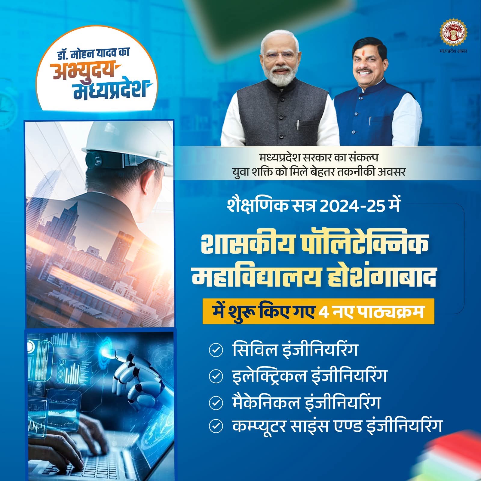▶️ शैक्षणिक सत्र 2024-25 में शासकीय पॉलिटेक्निक महाविद्यालय होशंगाबाद में शुरू किए गए 4 नए पाठ्यक्रम