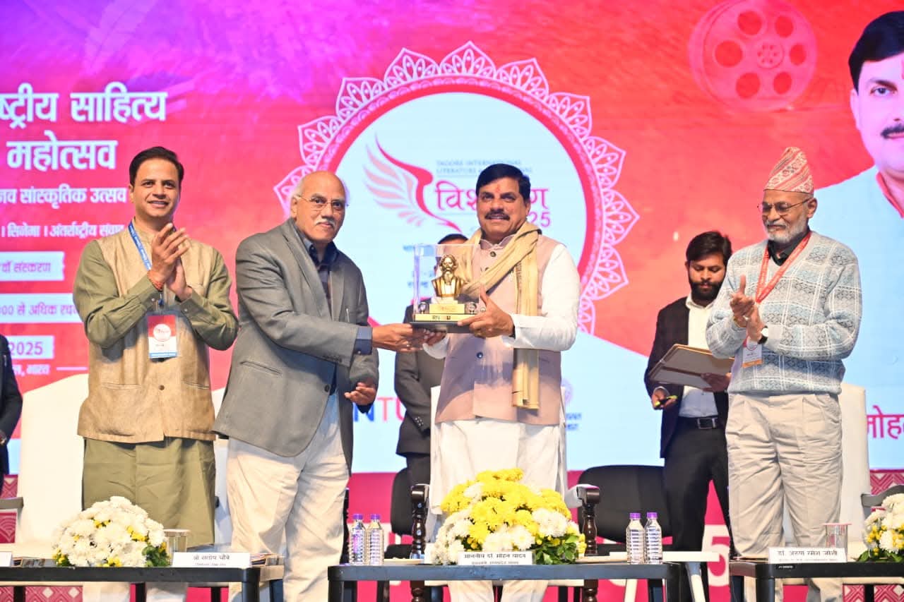 मुख्यमंत्री डॉ. मोहन यादव ने आज भोपाल के रवीन्द्र भवन में टैगोर अंतरराष्ट्रीय साहित्य–कला महोत्सव ‘विश्व रंग 2025’ के 7वें संस्करण में सहभागिकता कर अपने विचार साझा किए।