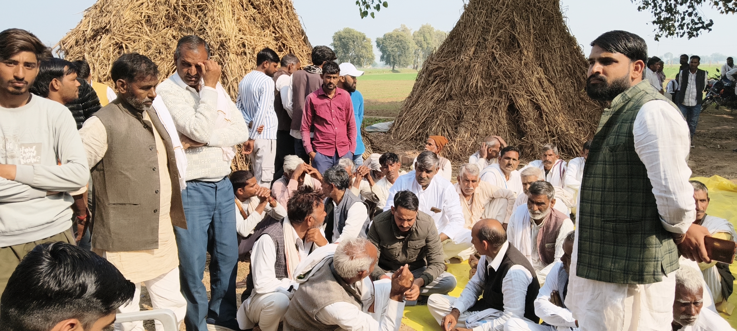 रिछोहा ग्राम पंचायत के ग्रामीणो को बिजली घर जगनेर धरना देने जा रहें किसानो को पुलिस नें रास्ते में ही रोका,