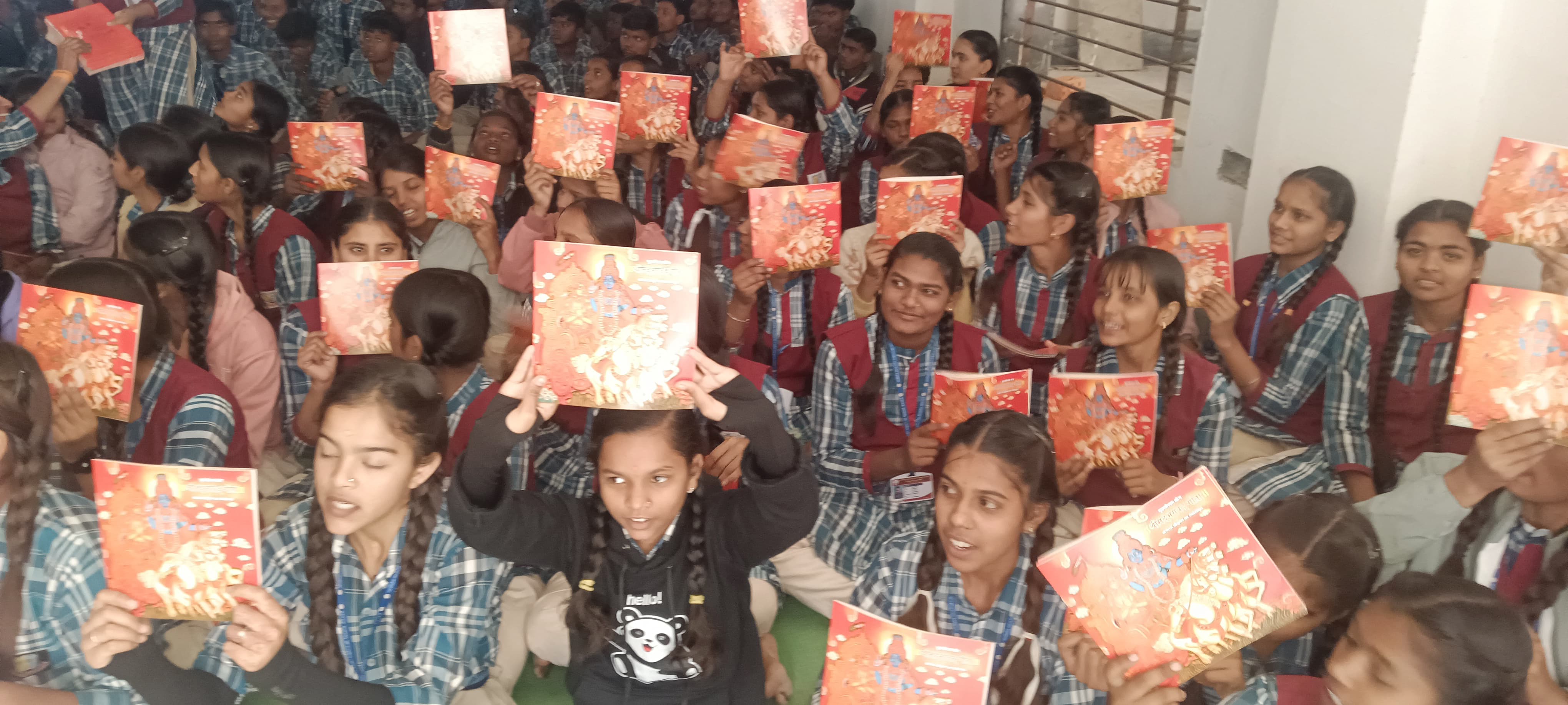 अंतर्राष्ट्रीय श्रीमद् गीता महोत्सव पर 15 वे अध्याय का सस्वर पाठ कथावाचक प्रदीप शर्मा द्वारा सैकड़ो छात्र-छात्राओं को कराया