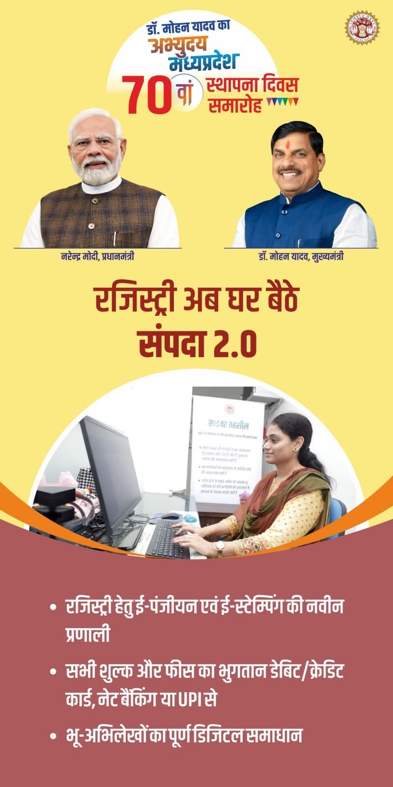 ✨मध्यप्रदेश बना पेपरलेस और फेसलेस पंजीयन की दिशा में अग्रणी राज्य।