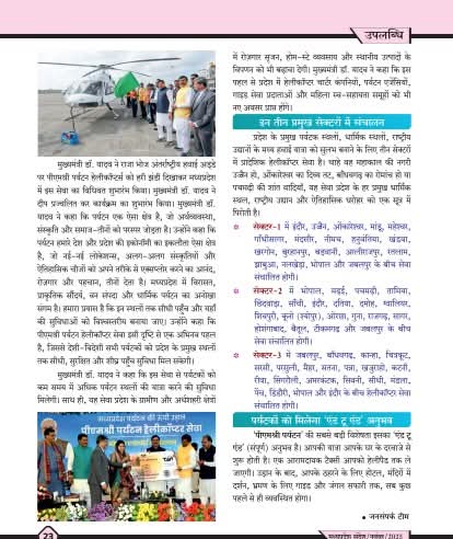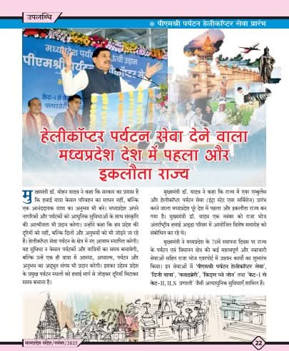 हेलीकॉप्टर पर्यटन सेवा देने वाला मध्यप्रदेश देश का पहला और इकलौता राज्य