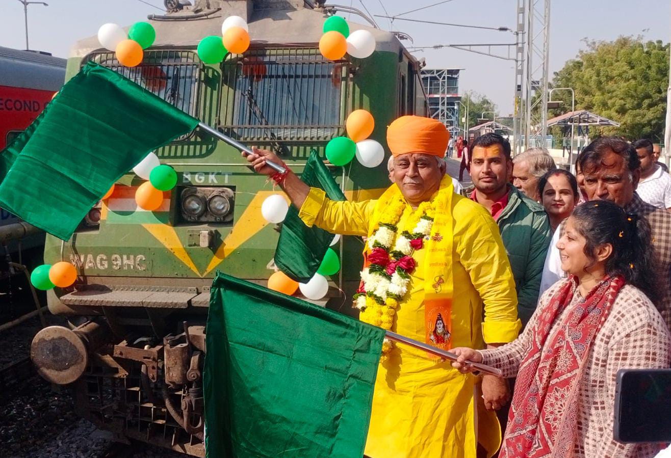 ढोल-नगाड़ों की थाप और जयकारों के बीच बीकानेर (पश्चिम) विधानसभा क्षेत्र विधायक श्री जेठानंद व्यास ने हरी झंडी दिखाकर इसे रवाना किया।