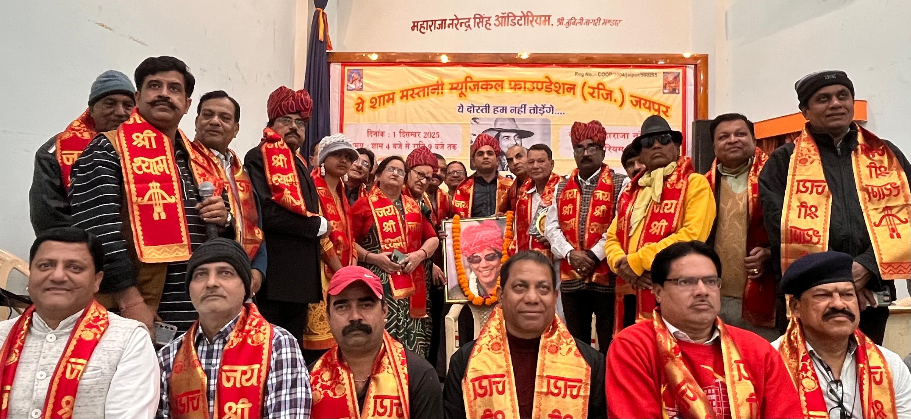 बीकानेर। ये शाम मस्तानी म्यूज़िकल फाउंडेशन ( रजि.) जयपुर की शाखा बीकानेर द्वारा स्थानीय महाराजा नरेंद्र सिंह ऑडिटोरियम हॉल में 1 दिसम्बर सोमवार की शाम को बीकानेर लोकसभा के पूर्व सांसद एवं सिने अभिनेता स्व. धर्मेन्द्र को समर्पित "ये दोस्ती हम नहीं तोड़ेंगे ".... श्रद्धांजलि स्वरूप उनके फिल्मों पर आधारित गीतों भरी शाम कार्यक्रम का आयोजन किया ।