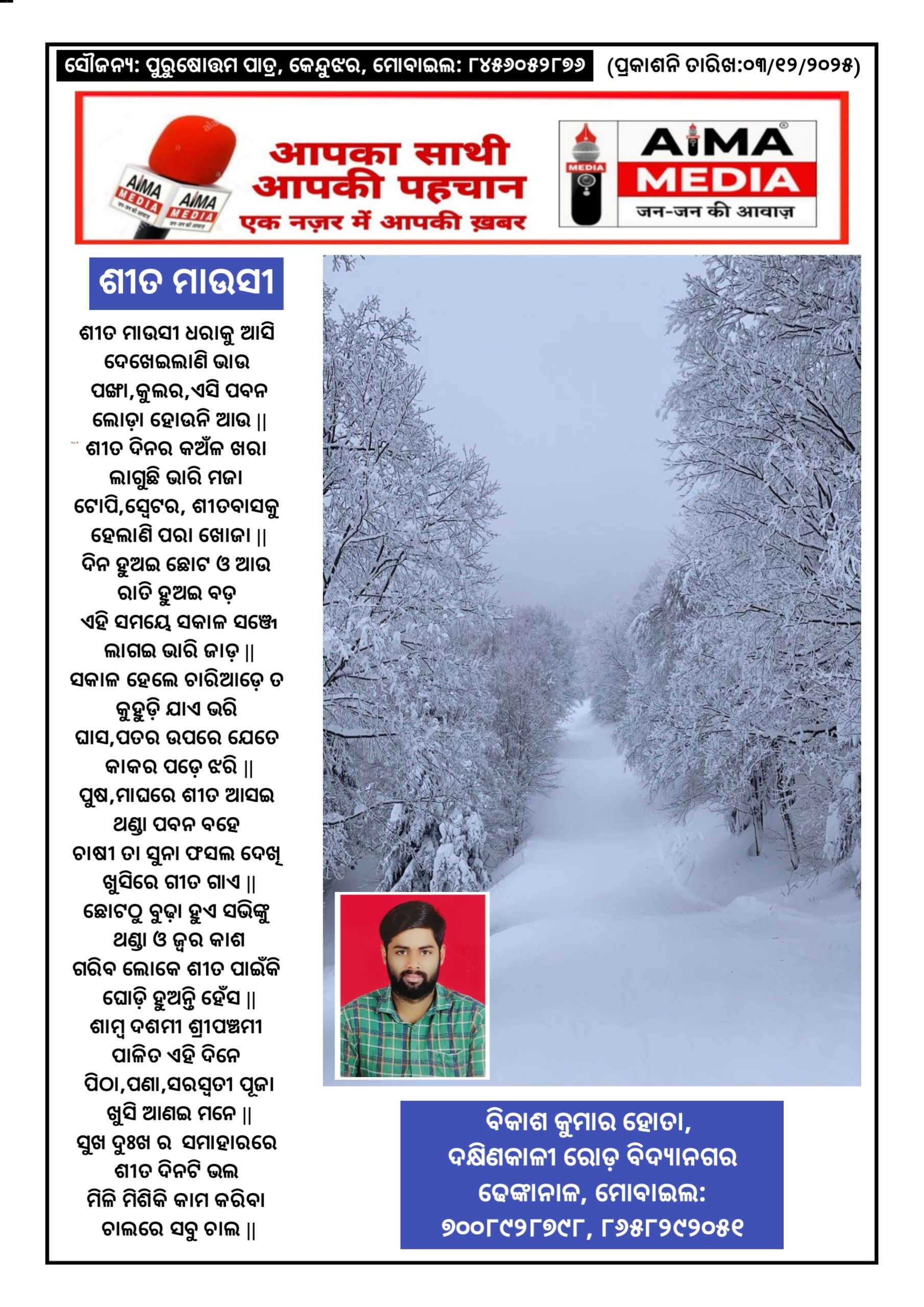 ଶୀତ ମାଉସୀ- ବିକାଶ କୁମାର ହୋତାଙ୍କ ରଚିତ କବିତା।