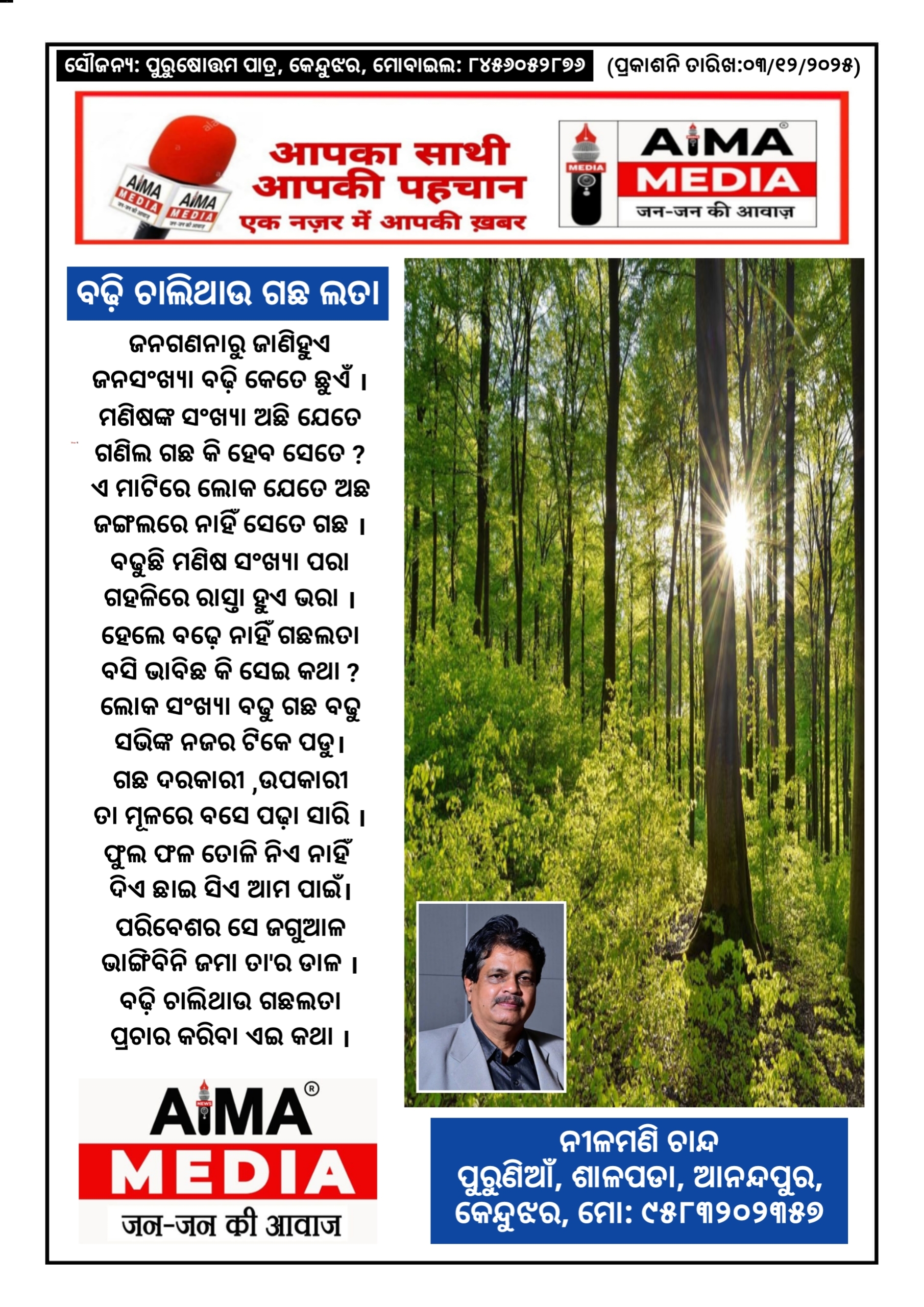 ବଢ଼ି ଚାଲିଥାଉ ଗଛ ଲତା- ନୀଳମଣି ଚାନ୍ଦ ଙ୍କ ଦ୍ଵାରା ରଚିତ କବିତା।