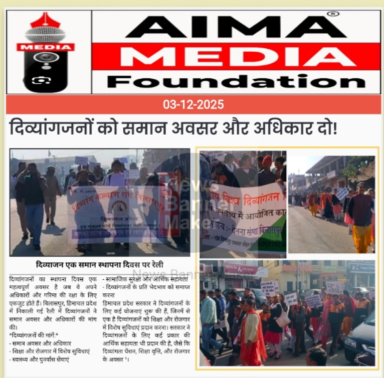 दिव्यांगजनों का स्थापना दिवस एक महत्वपूर्ण अवसर है जब वे अपने अधिकारों और गरिमा की रक्षा के लिए एकजुट होते हैं। बिलासपुर, हिमाचल प्रदेश में निकाली गई रैली में दिव्यांगजनों ने समान अवसर और अधिकारों की मांग की।