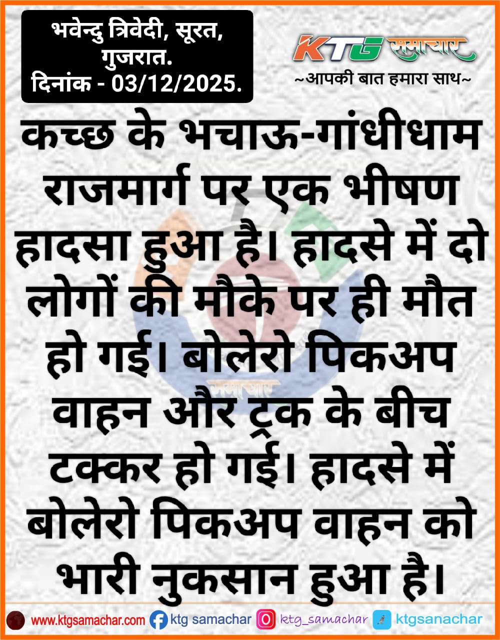 कच्छ के भचाऊ- गांधीधाम राजमार्ग पर एक भीषण हादसा हुआ है।