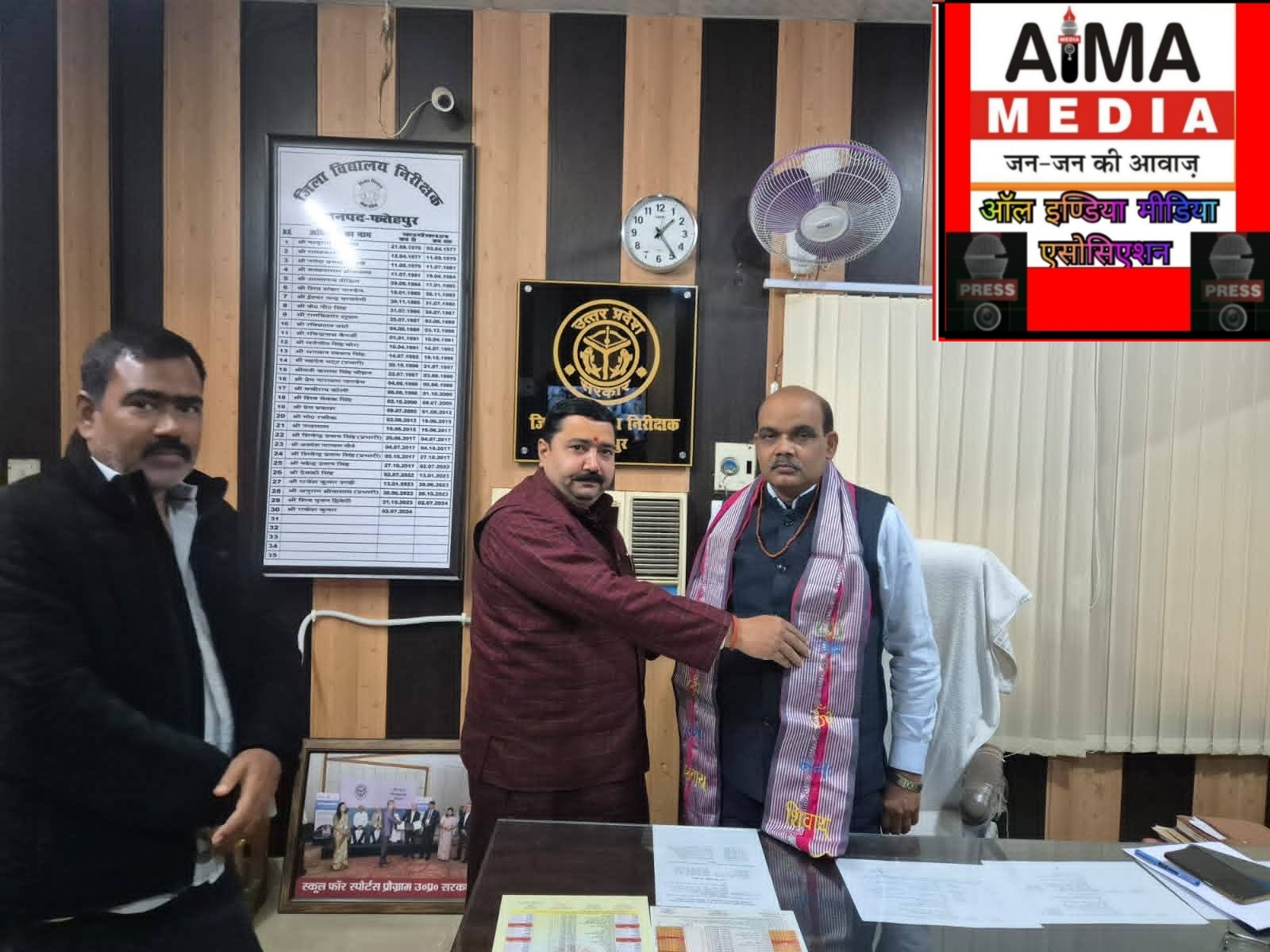 फतेहपुर जिला विद्यालय निरीक्षक महोदय को प्राचार्य ने अंगवस्त्र एवं रुद्राक्ष माला पहनाकर किया सम्मानित