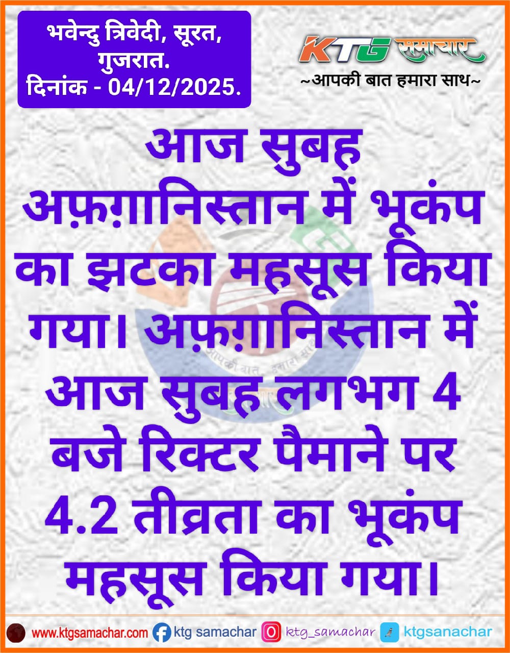 रिक्टर पैमाने पर 4.2 तीव्रता का भूकंप महसूस किया गया।