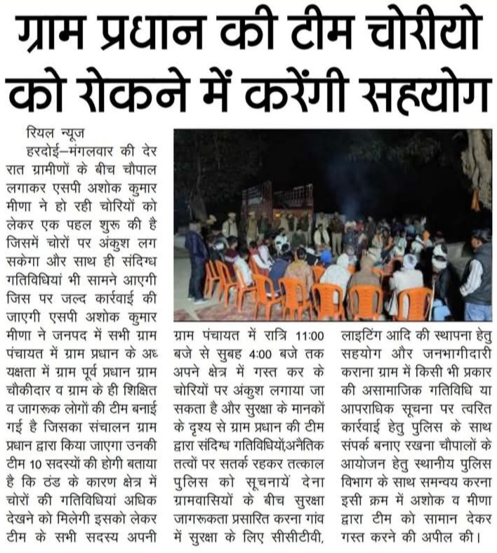 ग्राम प्रधानों की टीम चोरियो को रोकने में करेगी सहयोग