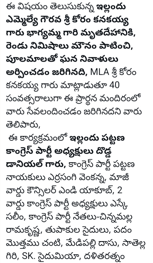 Yellandu senior pastor ammagaru died for this program yellandu MLA has came and did prayer