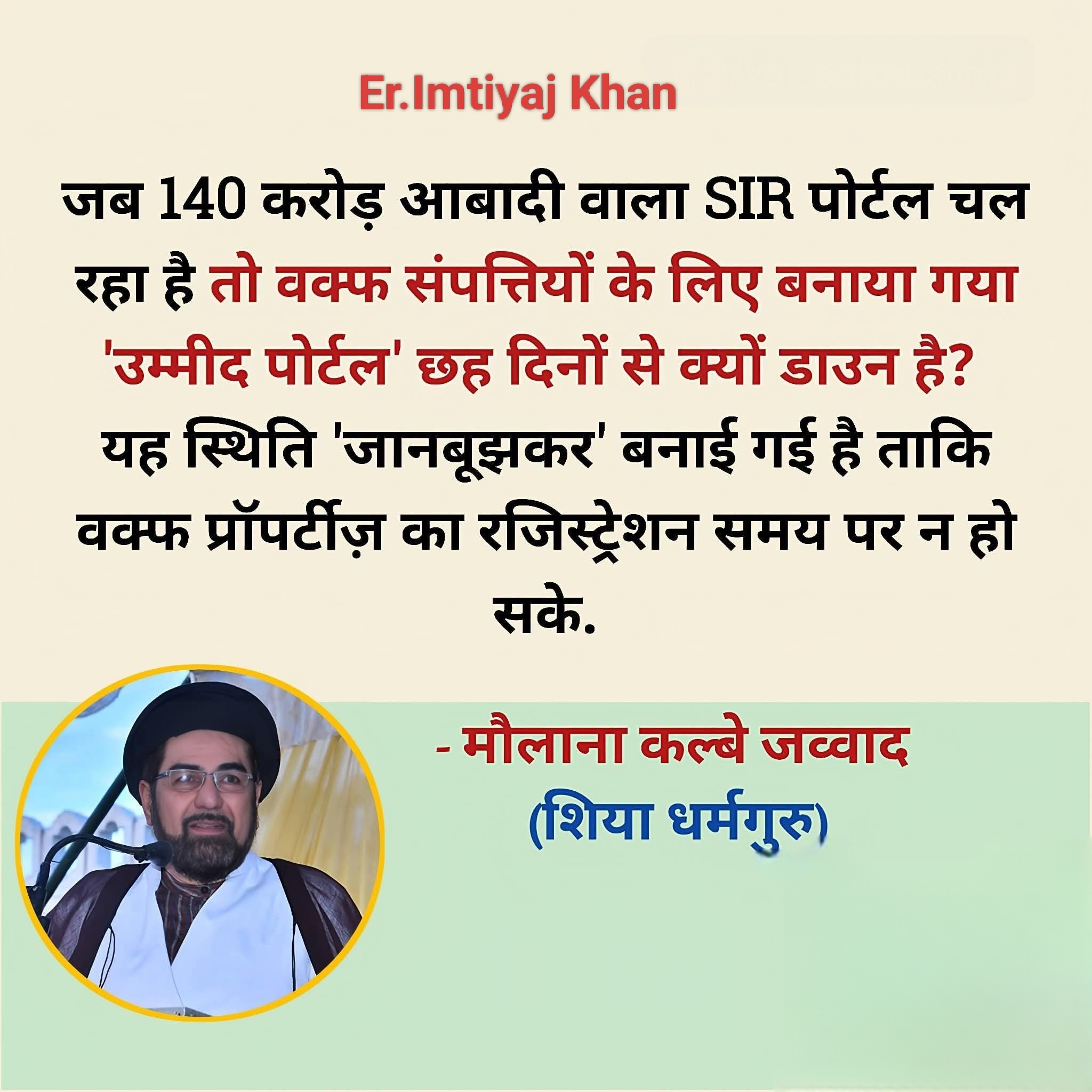 इसी मुद्दे पर शिया धर्मगुरु मौलाना कल्बे जवाद ने तीखी प्रतिक्रिया देते हुए आरोप लगाया कि पोर्टल का लगातार बंद रहना केवल तकनीकी खराबी नहीं, बल्कि “जानबूझकर बनाई गई स्थिति” है।