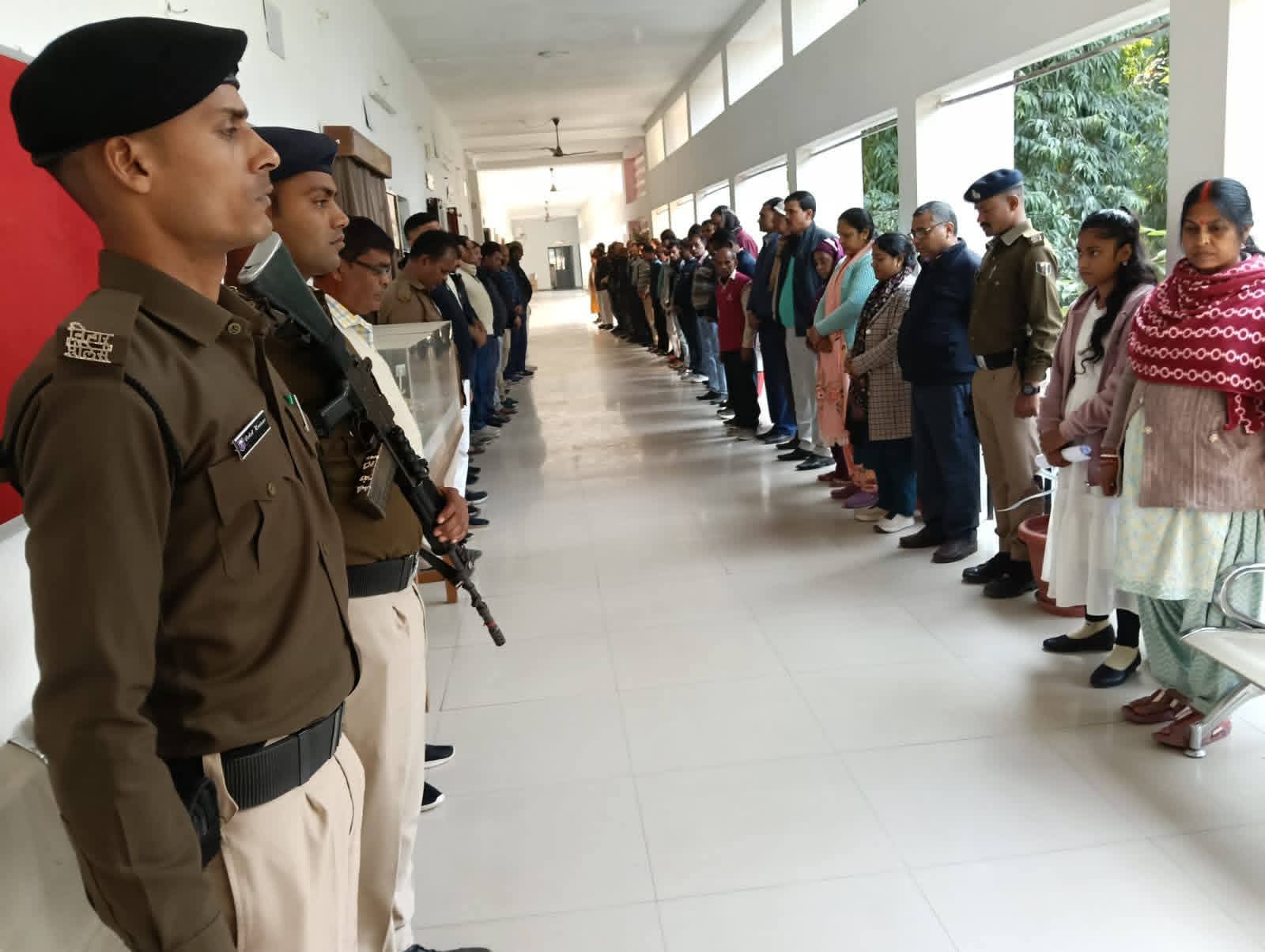दिवंगत आत्मा के सम्मान एवं शांति के लिए, समाहरणालय परिवार के सदस्यगण के द्वारा 02 (दो) मिनट का मौन धारण किया गया।