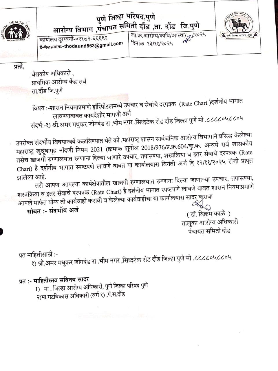 ЁЯПЫя╕П рд╕рд╛рд░реНрд╡рдЬрдирд┐рдХ рд╣рд┐рддрд╛рд╕рд╛рдареА тАУ рд░реБрдЧреНрдгрд╛рд▓рдпрд╛рдВрдордзреНрдпреЗ Rate Chart рд▓рд╛рд╡рдгреЗ рдЕрдирд┐рд╡рд╛рд░реНрдп рдХрд░рдгреНрдпрд╛рдд рдпрд╛рд╡реЗ