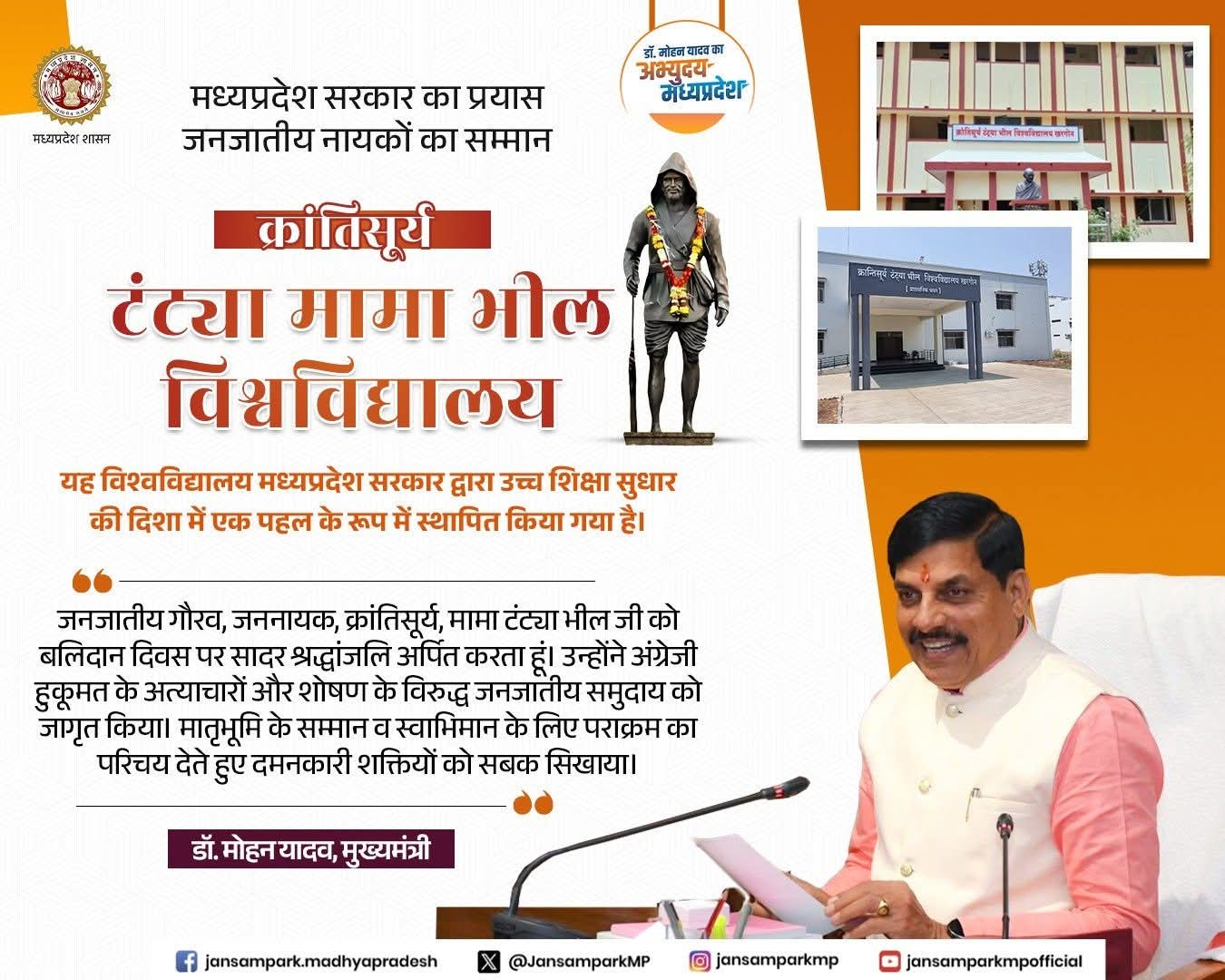 मध्यप्रदेश सरकार का प्रयास जनजातीय नायकों का सम्मान