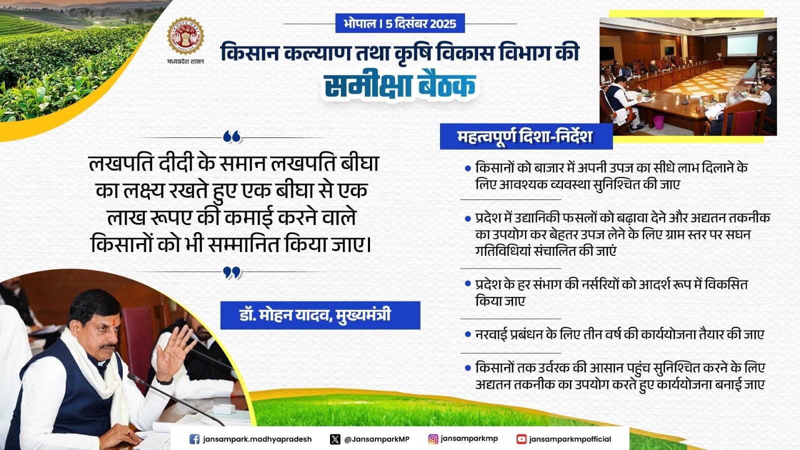 मुख्यमंत्री डॉ. मोहन यादव द्वारा किसान कल्याण तथा कृषि विकास विभाग की समीक्षा
