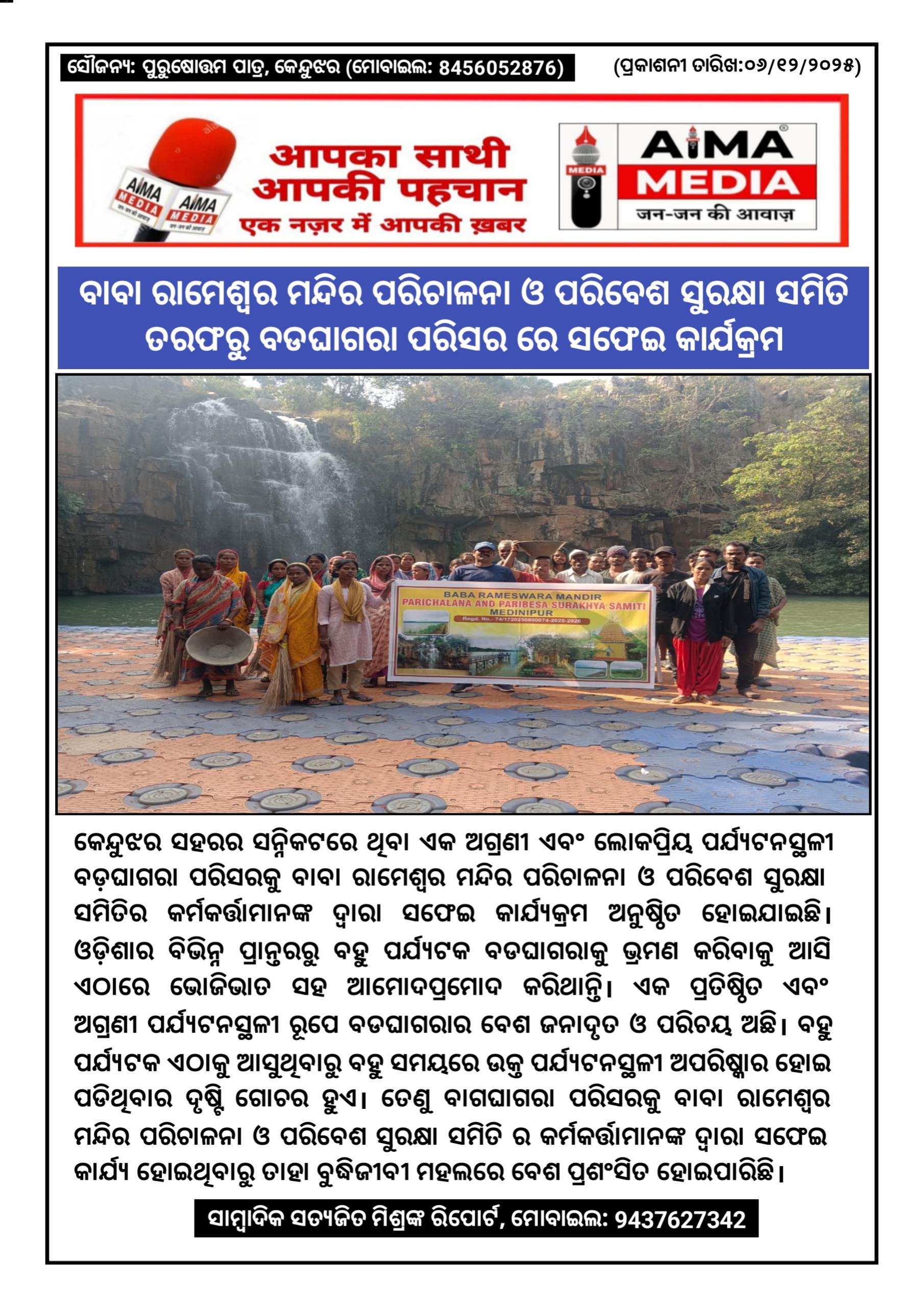 ବାବା ରାମେଶ୍ବର ମନ୍ଦିର ପରିଚାଳନା ଓ ପରିବେଶ ସୁରକ୍ଷା ସମିତି ତରଫରୁ ବଡଘାଗରା ପରିସର ରେ ସଫେଇ କାର୍ଯକ୍ରମ।