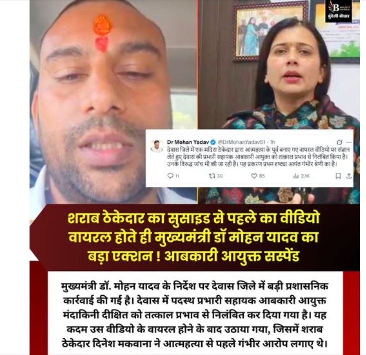 देवास में हुए मामले ने प्रदेश की प्रशासनिक व्यवस्था और सरकार की निर्णय प्रक्रिया पर कई गंभीर प्रश्न खड़े कर दिए हैं। मुख्यमंत्री डॉ. मोहन यादव के निर्देश पर प्रभारी सहायक आबकारी आयुक्त मंदाकिनी दीक्षित का तत्काल निलंबन सराहनीय कदम माना जा सकता है, परंतु इससे एक और कड़वी सच्चाई भी उजागर होती है—क्या प्रदेश की वर्तमान सरकार कार्रवाई भी जातिगत चश्मे से देखकर कर रही है?