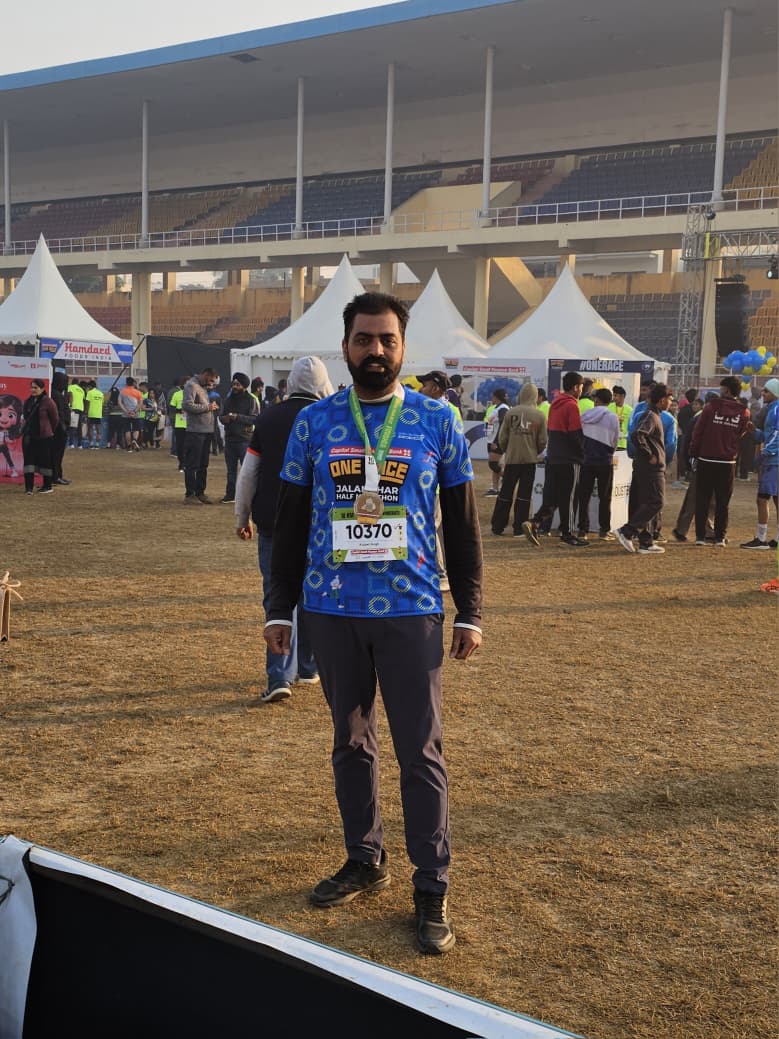 ਜਲੰਧਰ: ਗੁਰੂ ਗੋਬਿੰਦ ਸਿੰਘ ਸਟੇਡੀਅਮ ਤੋਂ ਹਾਫ ਮੈਰਾਥਨ ਦਾ ਆਗਾਜ਼ ਹੋਇਆ, ਜਿਸ ਵਿੱਚ ਹਜ਼ਾਰਾਂ ਲੋਕਾਂ ਨੇ ਹਿੱਸਾ ਲਿਆ,ਇਹ ਦੌੜਾਂ 5,10,21ਕਿਮੀ ਦੀਆਂ ਸੀ, ਇਸ ਵਿੱਚ ਕੁਲਜੀਤ ਸਿੰਘ ਜੋਕਿ ਪੰਜਾਬ ਪੁਲਿਸ ਦੇ ਮੁਲਾਜ਼ਮ ਹਨ ਉਨ੍ਹਾਂ ਨੇ 10ਕਿਲੋਮੀਟਰ ਤੱਕ ਦੌੜੇ ।