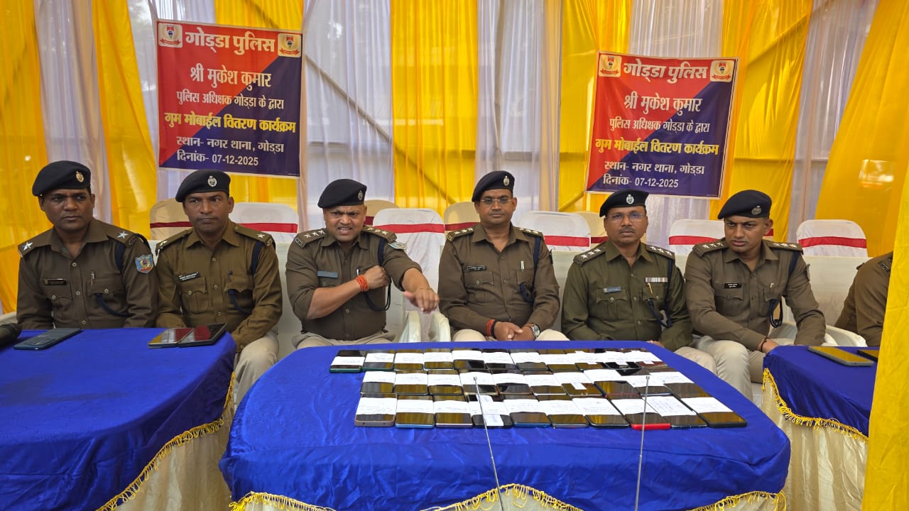 आज दिनांक-07.12.2025 को नगर थाना परिसर में पुलिस अधीक्षक महोदय, गोड्डा के निर्देश पर गोड्डा जिलांतर्गत विभिन्न थाना क्षेत्रों से गुम हुए मोबाइल फोन को ढूंढकर उनके असली धारकों को लौटाने हेतु *"गुम मोबाइल वितरण कार्यक्रम"* का आयोजन किया गया। उक्त कार्यक्रम में लगभग 31 मोबाइल फोन को उसके असली धाराकों को वापस किया गया। इस कार्यक्रम में अनुमंडल पुलिस पदाधिकारी, गोड्डा/महागामा, पुलिस उपाधीक्षक (मुख्यालय), पुलिस उपाधीक्षक (परिक्ष्यमान), पुलिस निरीक्षक-सह-थाना प्रभारी, नगर, पुलिस निरीक्षक, सदर प्रभाग, परिचारी परिवार, पुलिस केंद्र, गोड्डा थाना प्रभारी, मुफस्सिल/मोतिया एवं अन्य पदाधिकारी उपस्थित रहे।